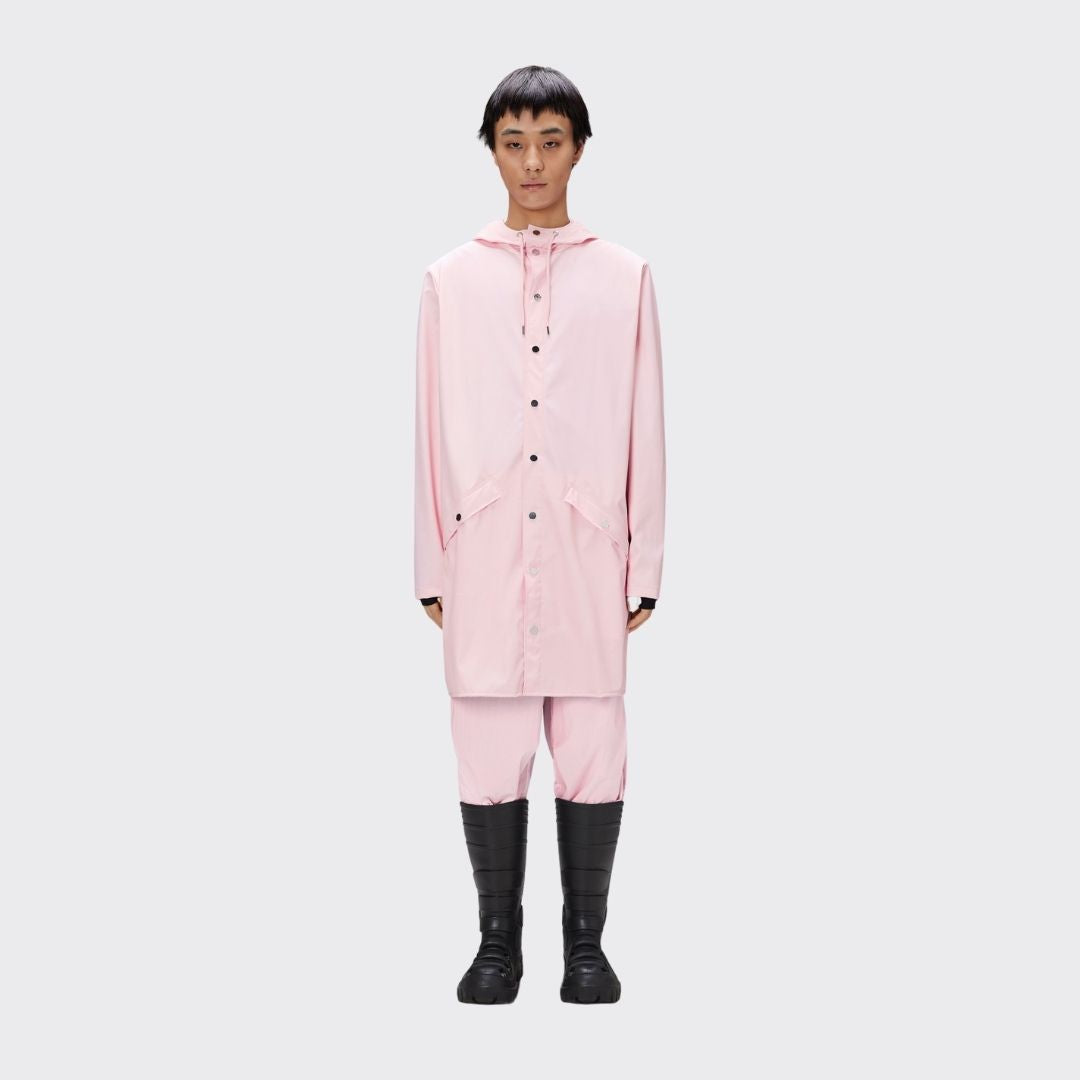 O Long Jacket é a versão expandida do design clássico Rains. Este casaco é um modelo unissex contemporâneo que oferece a máxima funcionalidade com uma silhueta minimalista. Inclui bolsos oblíquos com costura dupla soldada e aba, punhos ajustáveis e bainha assimétrica, mais comprida atrás. O look é completado com botões de pressão, ilhós nas cavas e pala traseira com aberturas ocultas.