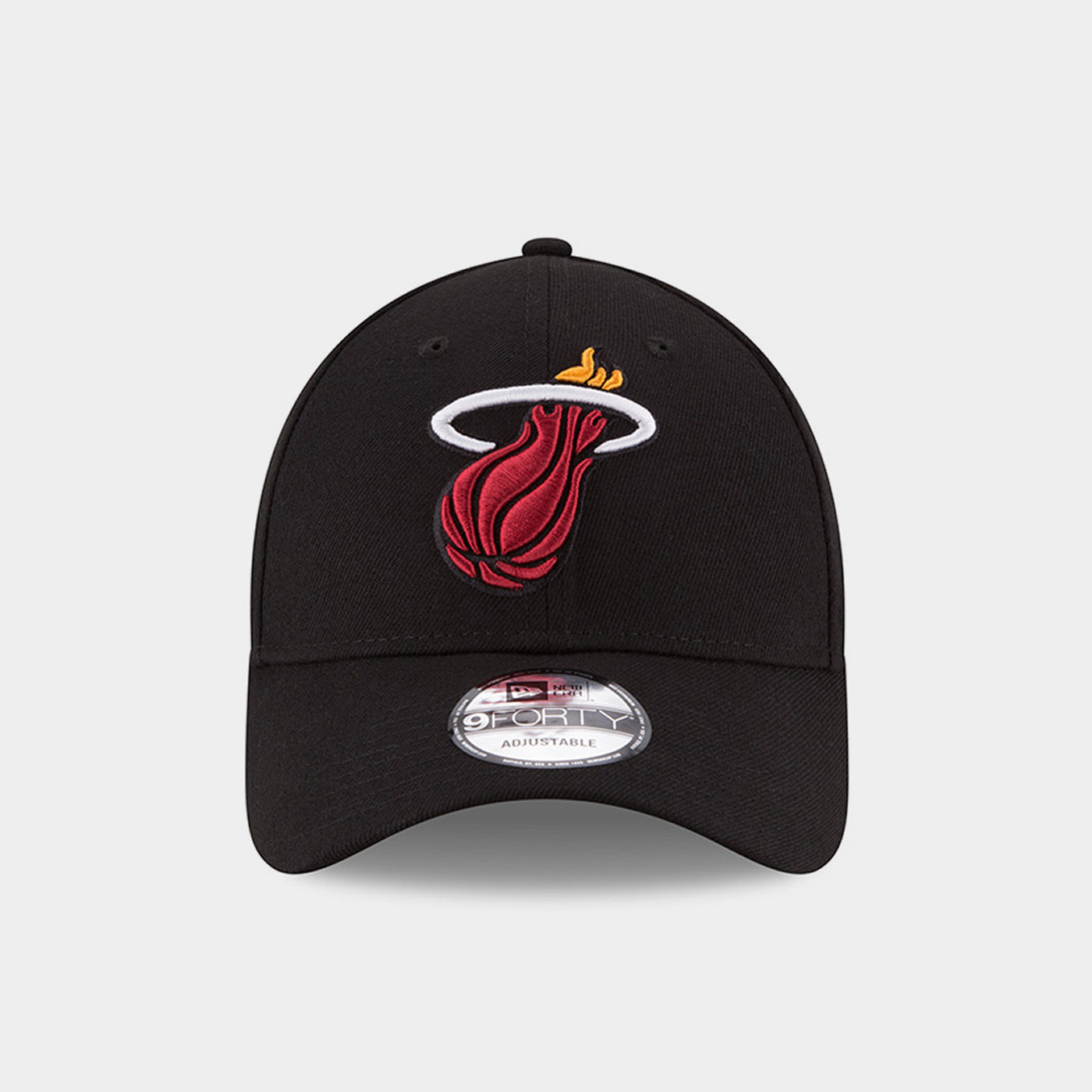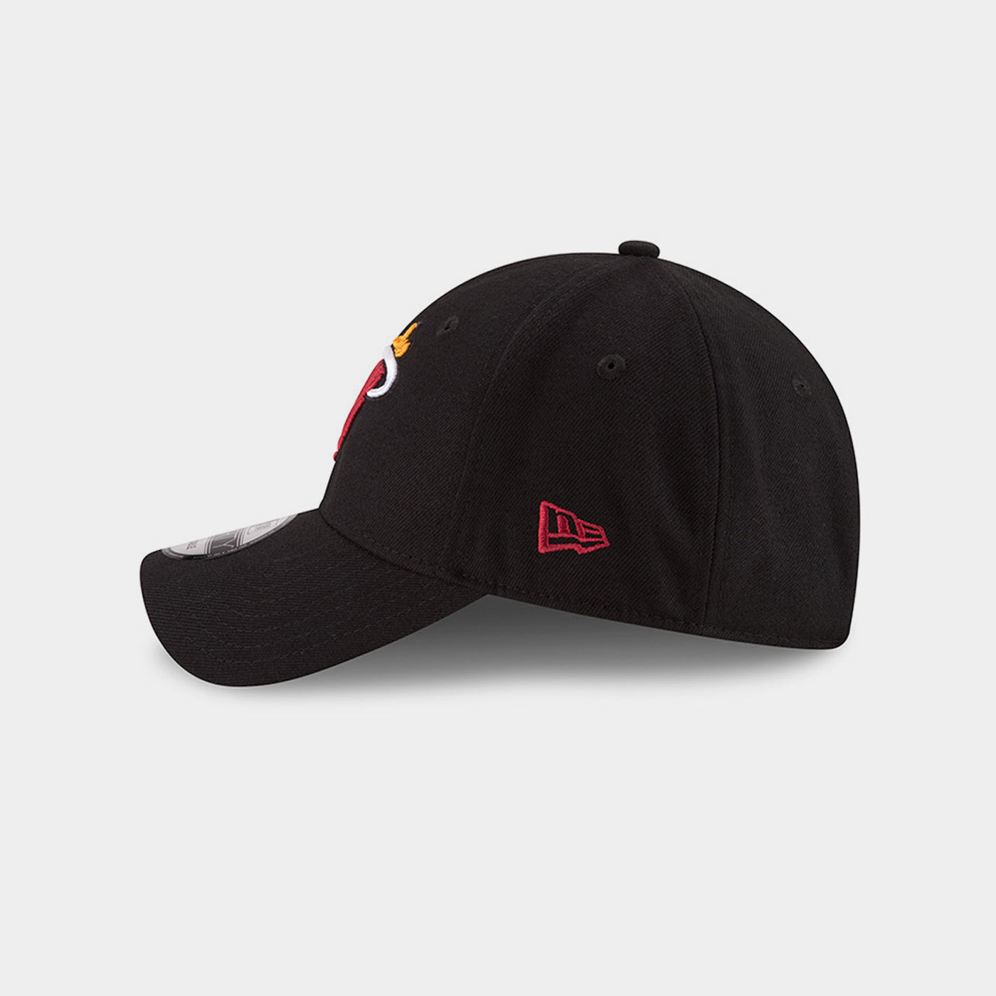 En negro llamativo y con el famoso emblema de la llama en la parte delantera y en el centro, la New Era Miami Heat The League 9FORTY oficial de los Miami Heat para la NBA The League.