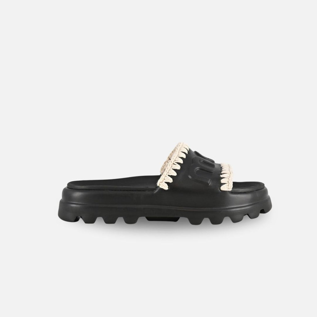 Mou Winter Bio Slide Long Hair Pony & Logo Long Hair Pony Black