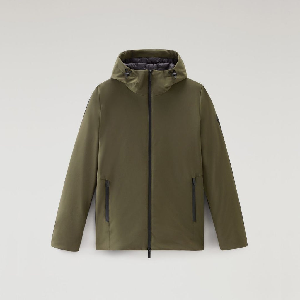Woolrich Men's Stretch Nylon Jacket With Padding And Removable Hood Dark Green