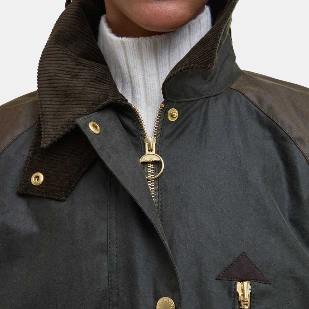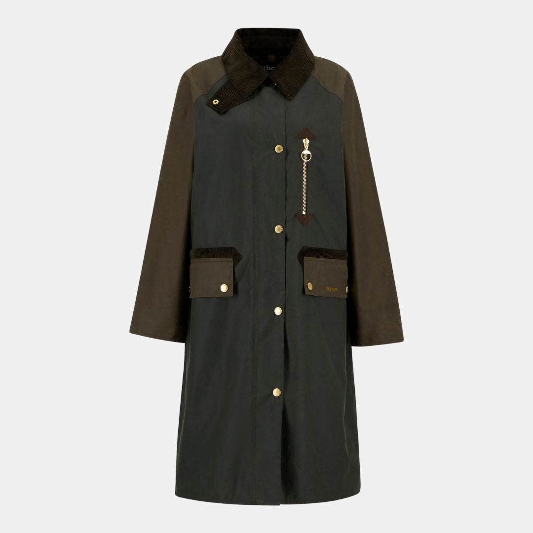 Barbour Evette Waxed Car Coat Fern/Beech/Ancient Tartan