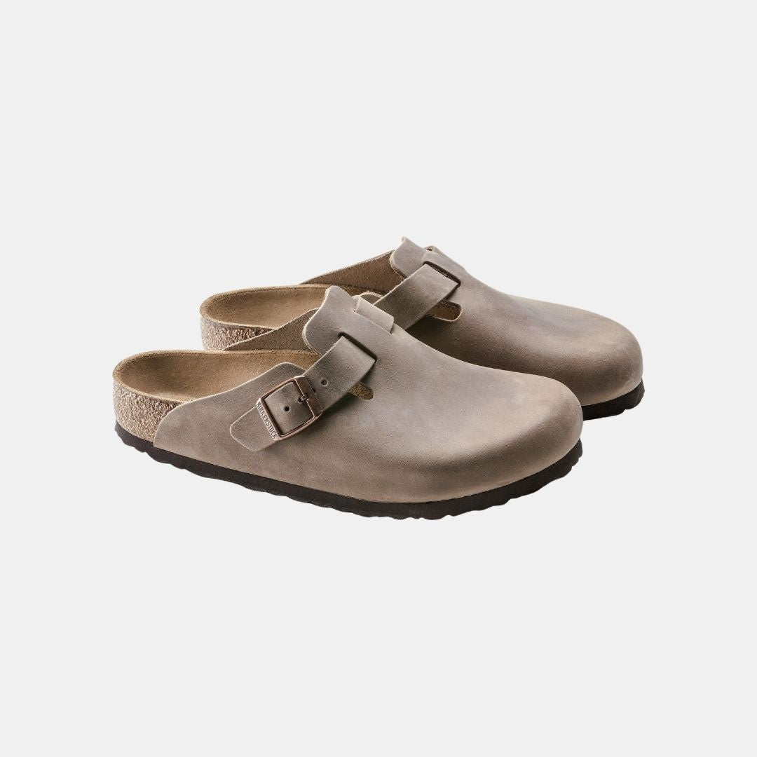 Das Modell BIRKENSTOCK Boston ist ein echter Klassiker, der das ganze Jahr über problemlos getragen werden kann. Mit seinem raffinierten, individuell anpassbaren Design genießt der Boston längst Legendenstatus. Das Obermaterial besteht aus sehr dickem und geöltem Nubukleder, gefertigt ohne Nähte an den Rändern.