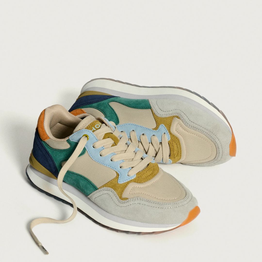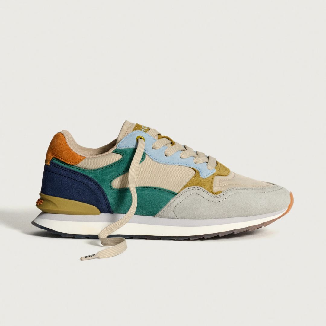 Retro-Style Sneaker in Materialkombination. Verschluss mit Schnürsenkeln. Logodetail an der Ferse.