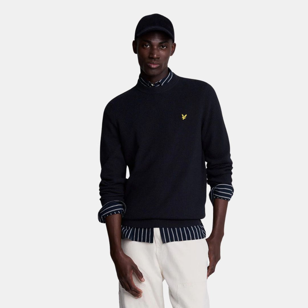 Lyle & Scott Grid Knit Crew Neck Jumper Jet Black