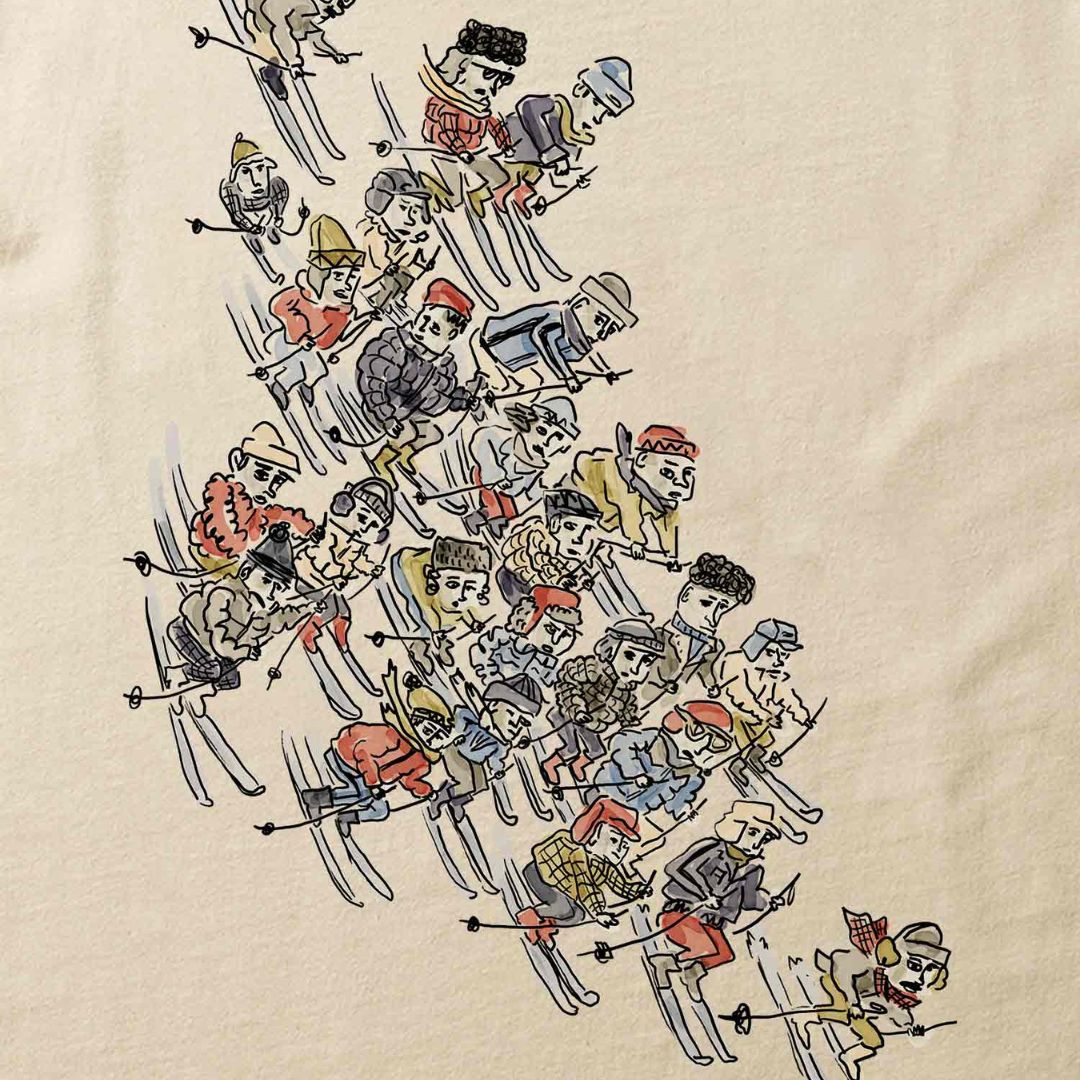 Erdfarbene Kurzarm-T-Shirt, hergestellt aus 100% Bio-Baumwolle. Auf der Rückseite und in der Mitte der Brust befindet sich das spezielle Design "Chairlift" mit dem Logo "Edmmond". Entworfen mit einem entspannten Schnitt und einer perfekten Länge.