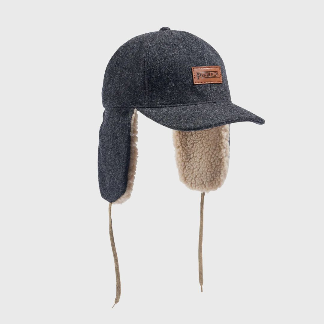 Eine klassische Sechszonenmütze mit synthetischen Lammfell-Ohrenklappen, die an kalten Tagen getragen oder bei Bedarf hochgebunden werden kann. Sie verfügt über raffinierte Details wie einen Lederriemen hinten und eine Messingschnalle. Zeigt unser Wyeth Trail-Muster, gefertigt aus gewebter Wolle in unseren Fabriken im Nordwestpazifik.