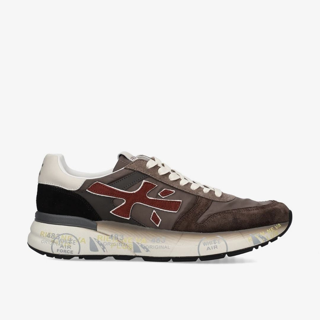 Mick-Sneakers aus einer Mischung hochwertiger Materialien und Leder gefertigt. Das Modell ist in Blau gehalten für einen lässigen Stil. Seine ikonische Silhouette ist mit dem Premiata-Logo verziert.