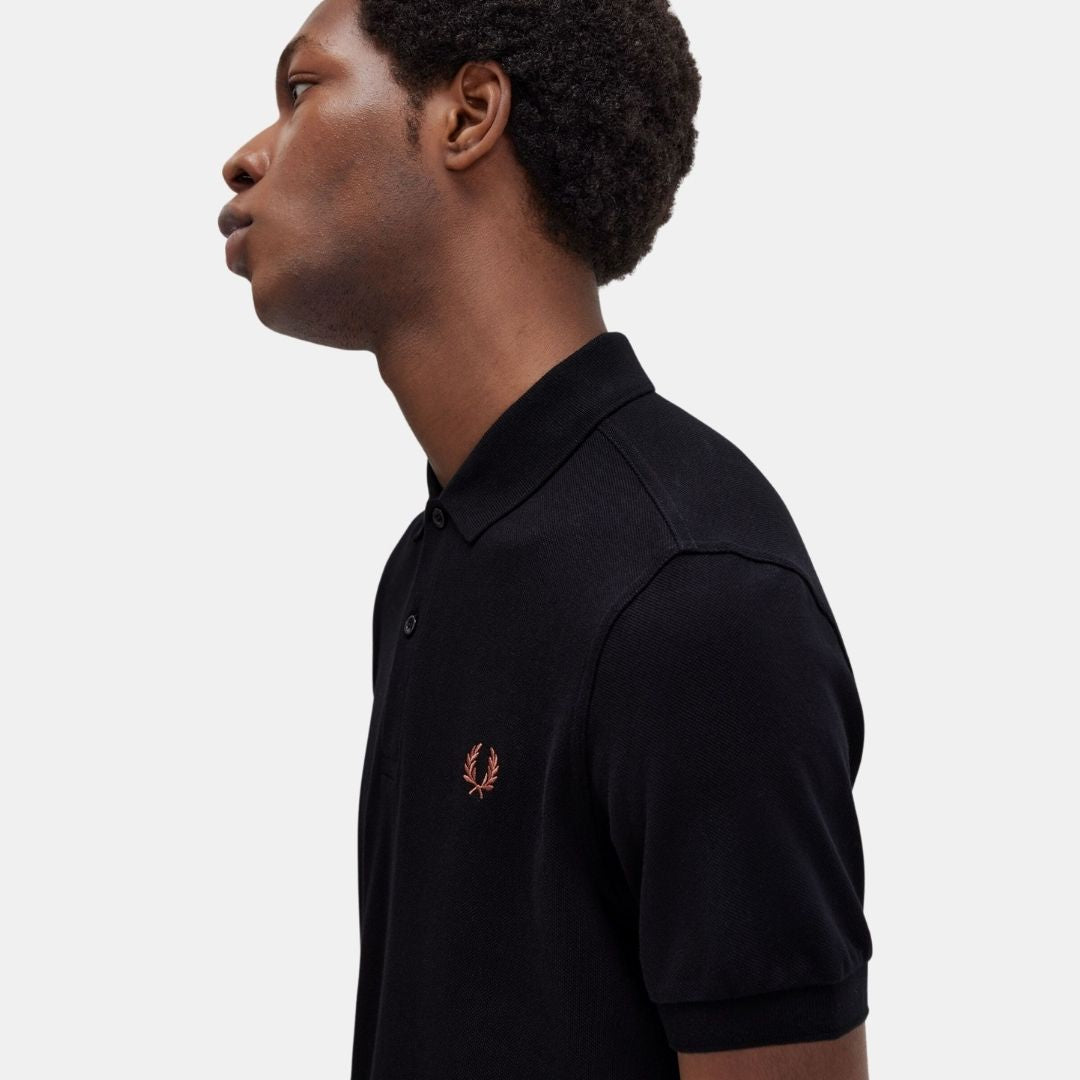 Fred Perry M6000 Plain Shirt Black & Whisky Brown