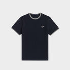 Ein T-Shirt mit Rundhalsausschnitt und dem unverwechselbaren zweistreifigen Besatz am Kragen und an den Ärmelbündchen. Hergestellt aus leichtem Baumwollstrick und mit unserem geraden Schnitt.