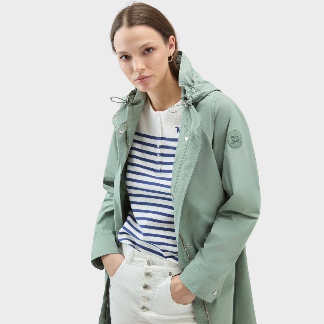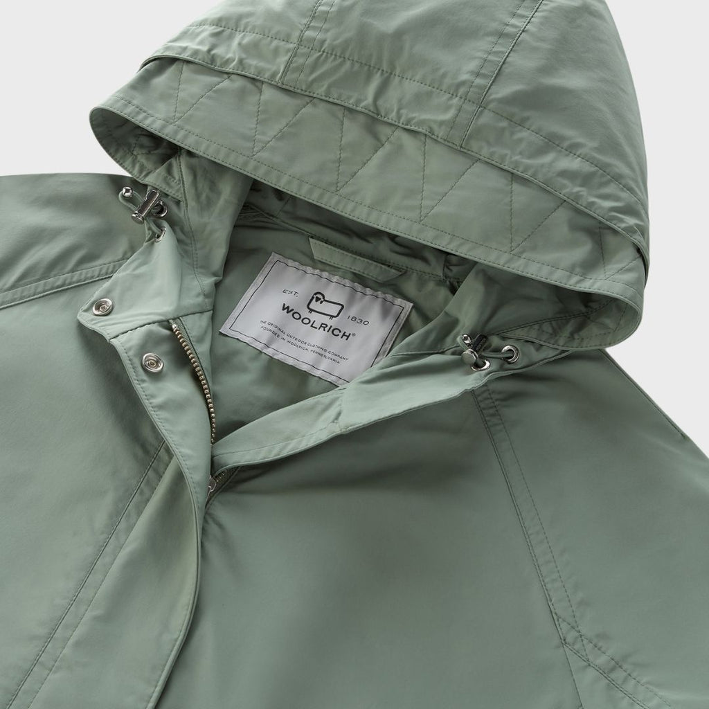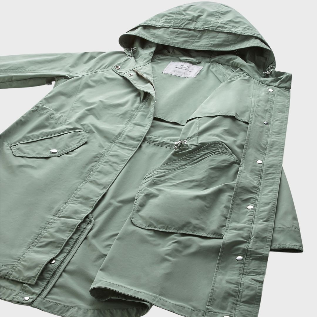 Dieser Parka ist vom Arctic Parka von Woolrich inspiriert, verleiht dem ikonischen Modell jedoch eine leichte Konsistenz für die warmen Jahreszeiten. Es besteht aus wasserabweisendem und windabweisendem Urban Touch-Material, um Komfort und Schutz vor leichtem Regen zu gewährleisten. Seine Linien sind klar und es verfügt über funktionale Details wie die verstellbare Kapuze mit Schirm. Es verfügt über einen verdeckten Reißverschluss und Druckknopfverschluss, verstellbare Druckknopfmanschetten, Eingrifftaschen mit Klappen und eine Rückenöffnung mit Druckknöpfen. Mit dem innenliegenden Kordelzug können Sie die Passform anpassen.