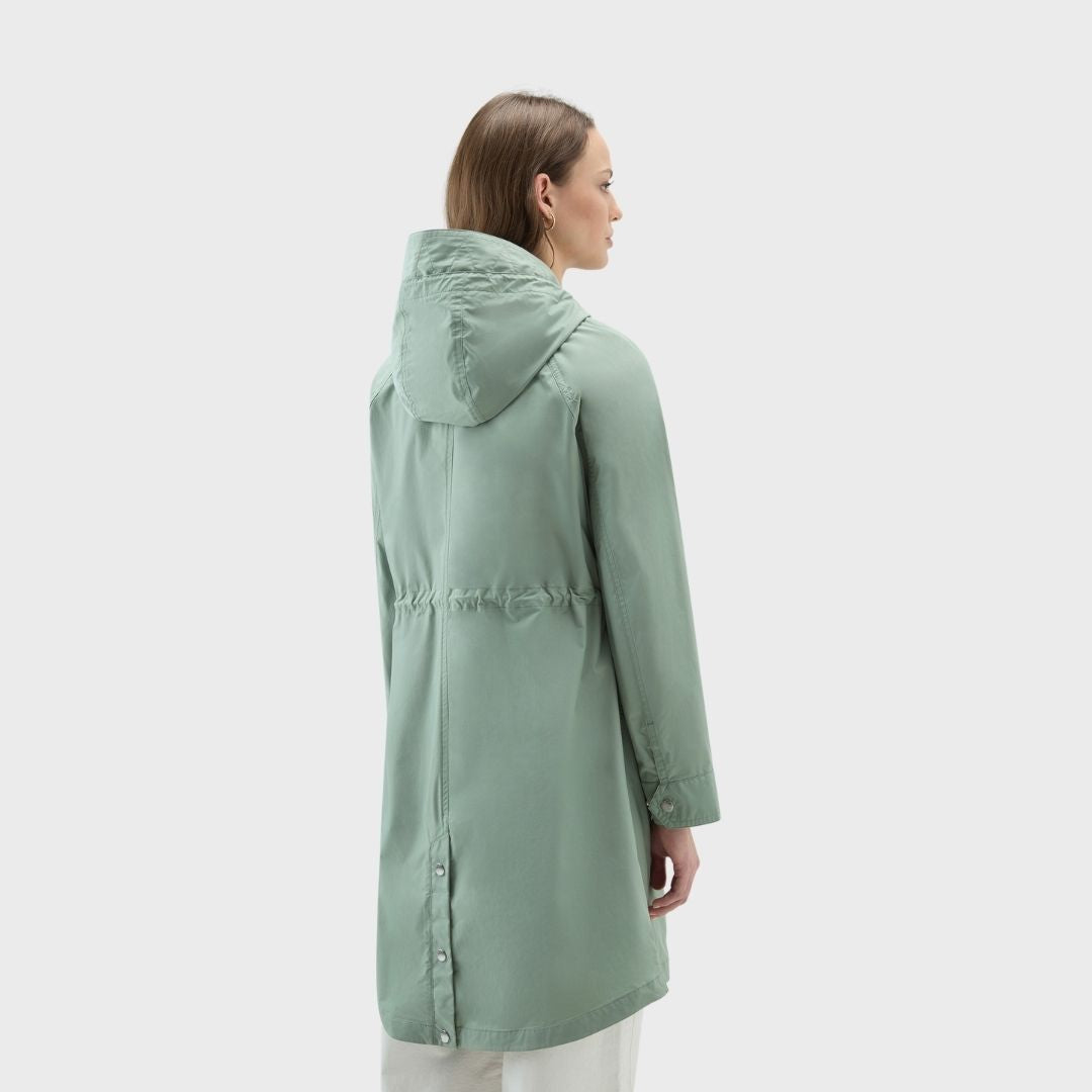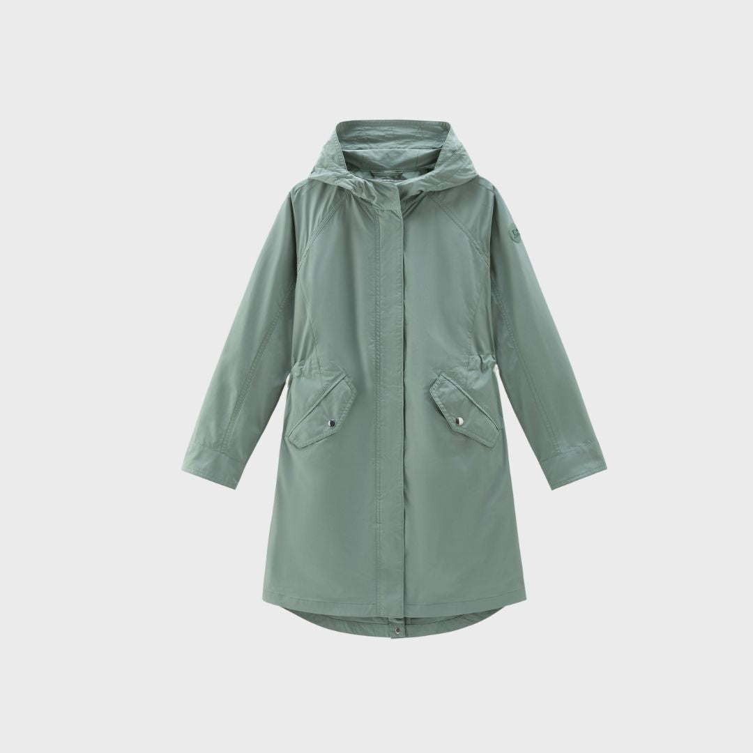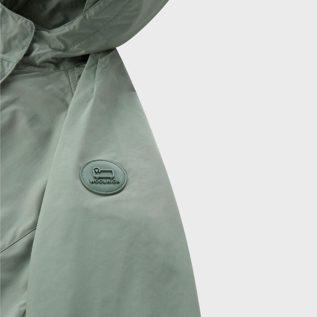 Dieser Parka ist vom Arctic Parka von Woolrich inspiriert, verleiht dem ikonischen Modell jedoch eine leichte Konsistenz für die warmen Jahreszeiten. Es besteht aus wasserabweisendem und windabweisendem Urban Touch-Material, um Komfort und Schutz vor leichtem Regen zu gewährleisten. Seine Linien sind klar und es verfügt über funktionale Details wie die verstellbare Kapuze mit Schirm. Es verfügt über einen verdeckten Reißverschluss und Druckknopfverschluss, verstellbare Druckknopfmanschetten, Eingrifftaschen mit Klappen und eine Rückenöffnung mit Druckknöpfen. Mit dem innenliegenden Kordelzug können Sie die Passform anpassen.