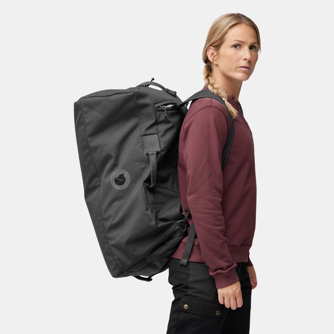 Große, wasserfeste und langlebige Reisetasche, hergestellt aus recyceltem Polyamid mit TPE-Laminat. Die Rucksackriemen sind ergonomisch geformt für mehr Komfort, sodass sie auch als Tragegriffe verwendet und zum Einchecken bei Flügen verstaut werden können. Der Hauptreißverschluss der Färden Duffel 80 ist abschließbar und verfügt über eine Außentasche mit Reißverschluss. Die Tasche hat außerdem ein abschließbares Stiefelfach und eine große Netzaußentasche mit zwei Innenfächern sowie Kompressionsriemen an beiden Enden. Die Polsterung oben und an der Basis schützt den Inhalt vor Stößen und Erschütterungen.
