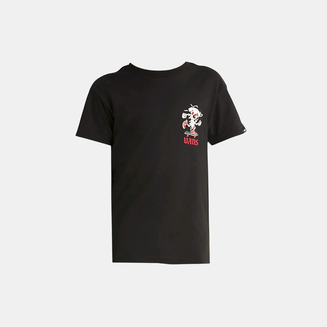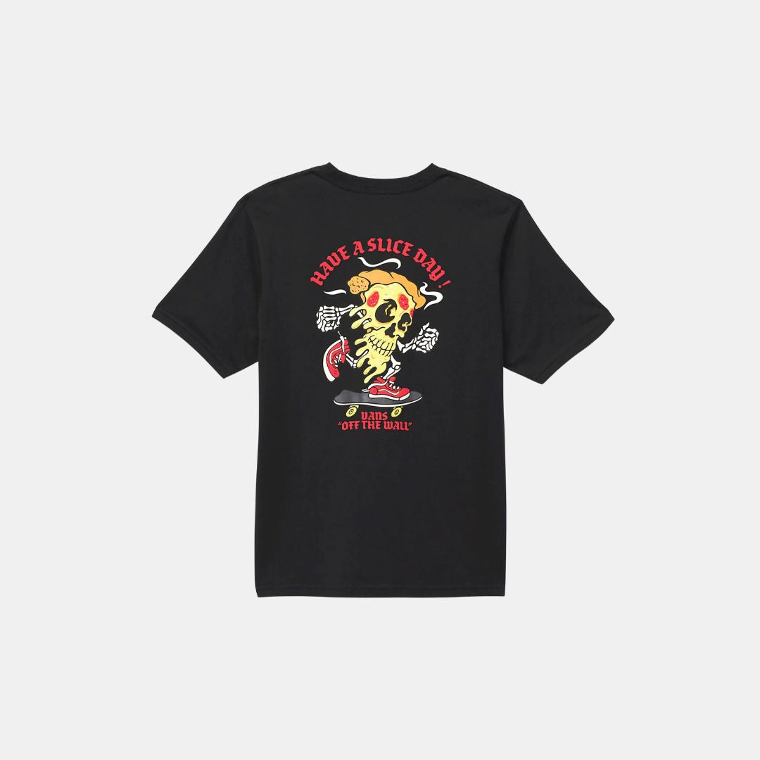 Vans T-Shirt mit Vans-Logo auf der Vorderseite. Skate-Schädel in Form einer Pizzascheibe auf der Rückseite. Für Kinder von 8 bis 14 Jahren.