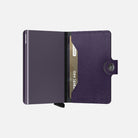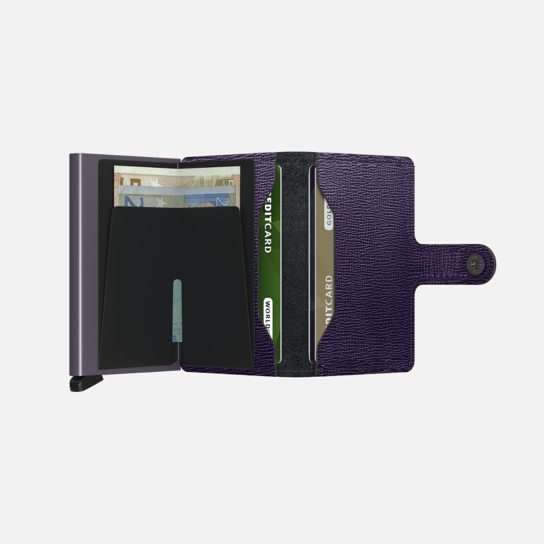 Klein, aber mit überraschend großer Kapazität: Die Miniwallet erfüllt alle Bedürfnisse. Die Außenhülle kann Geldscheine, Tickets und Karten aufnehmen, während der Aluminium-Cardprotector das Herausziehen der Karten mit einer einfachen Bewegung ermöglicht, wodurch verhindert wird, dass sie sich biegen, brechen oder unbemerkt gelesen werden.