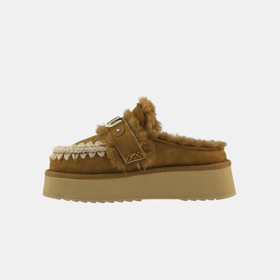 Mou Eskimo Inner Wedge Short Strass & Leather Stitichings Camel