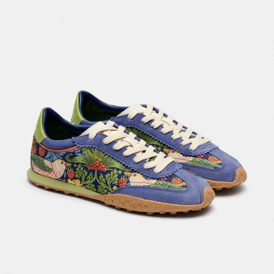Turnschuh gefertigt mit einer Neuinterpretation des ikonischen Musters Strawberry Thief, eine Verschmelzung des künstlerischen Erbes von Morris & Co. und der zeitgenössischen Vision von HOFF. Sohle mit Struktur für besseren Halt. Rückseite mit Logodetail. Verschluss mit passenden Schnürsenkeln.
