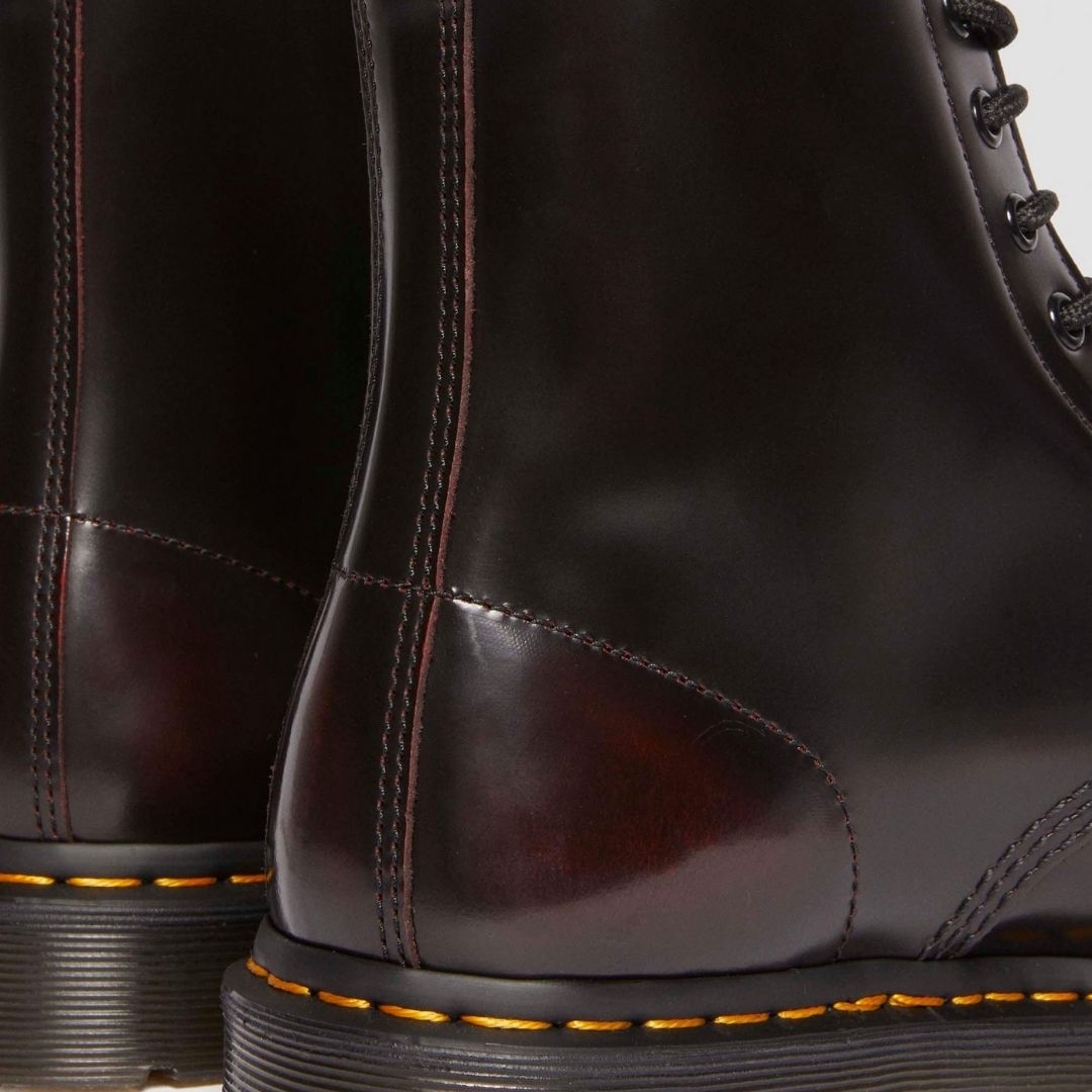 Zeige deine Farben. Der klassische 1460 Stiefel aus Arcadia-Leder, ein hochglänzendes Leder, das mit der Zeit eine darunterliegende Kirschenrot-Farbe zeigt. Dieser 8-Loch-Stiefel hat ein schärferes Design und trägt die gesamte DNA von DM's: die traditionelle DMS-Sohle, die ikonische gelbe Naht und die Air-Fersenschlaufe.
