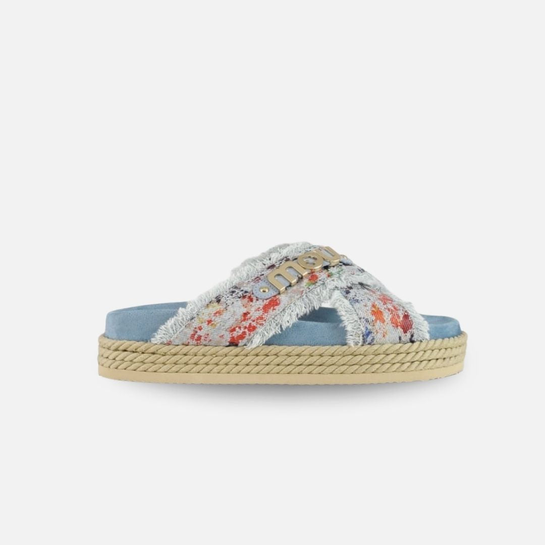 Mou Eva Sandal Criss Cross Rope Sandal Metallic Denim Delave