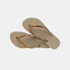 Die Havaianas Slim Glitter II Flip-Flops sind die perfekte Verbindung von Eleganz und Komfort, um im Sommer einen Hauch von Raffinesse zu verleihen.Diese Flip-Flops zeichnen sich durch ihr schlankes Design und ihr funkelndes, glänzendes Finish aus, was sie zum idealen Accessoire für jedes Sommeroutfit macht, von einem lässigen Kleid bis hin zu Shorts mit T-Shirt.