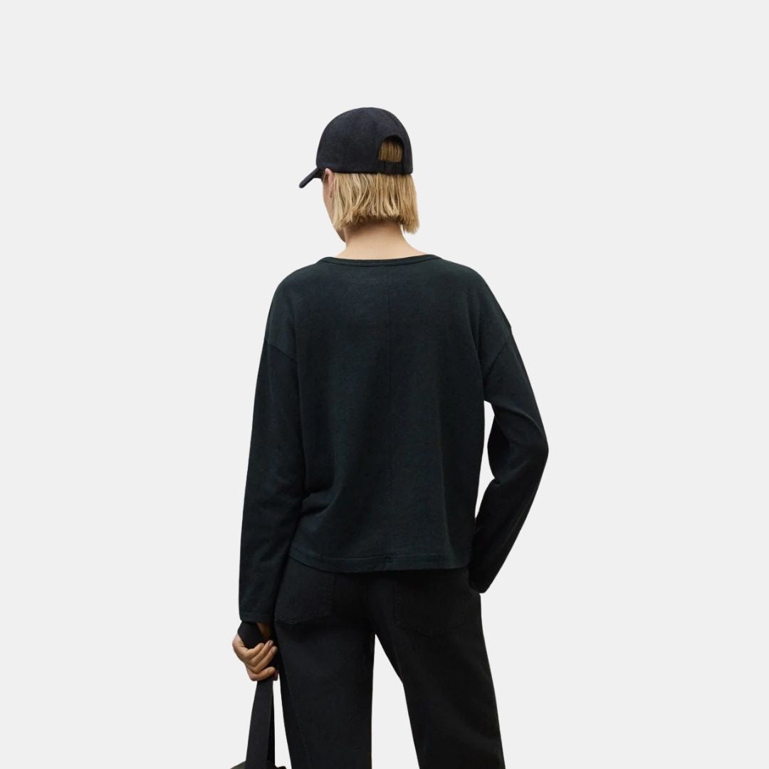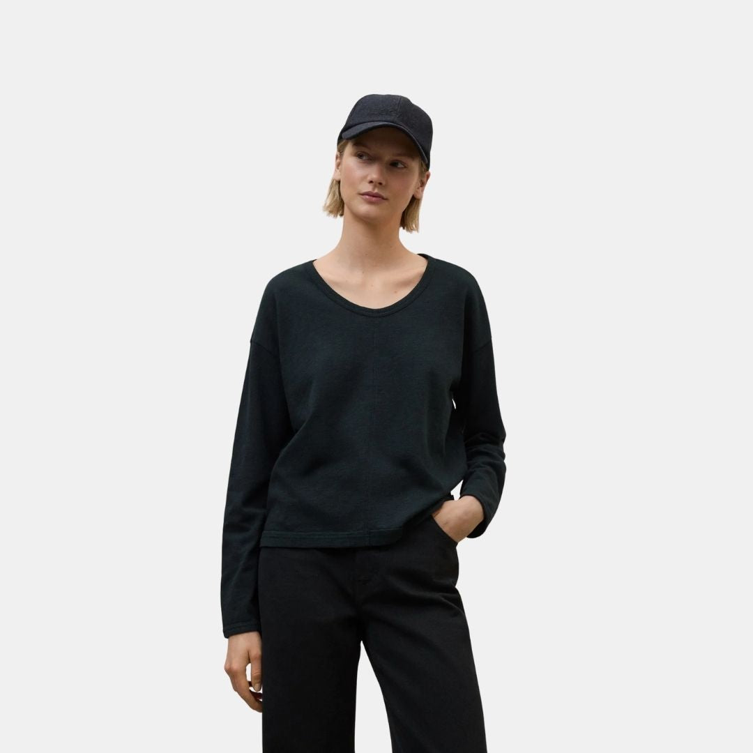 Das Adraga-T-Shirt besteht aus einem Hauptgewebe aus 80 % Bio-Baumwolle und 20 % recycelter Baumwolle. Recycelte Baumwolle spart Wasser und CO2, verleiht Textilabfällen neues Leben und reduziert den Einsatz von neuer Baumwolle. Es benötigt keine Pestizide oder neue Anbauflächen, was Böden, Wasser und Biodiversität schützt.