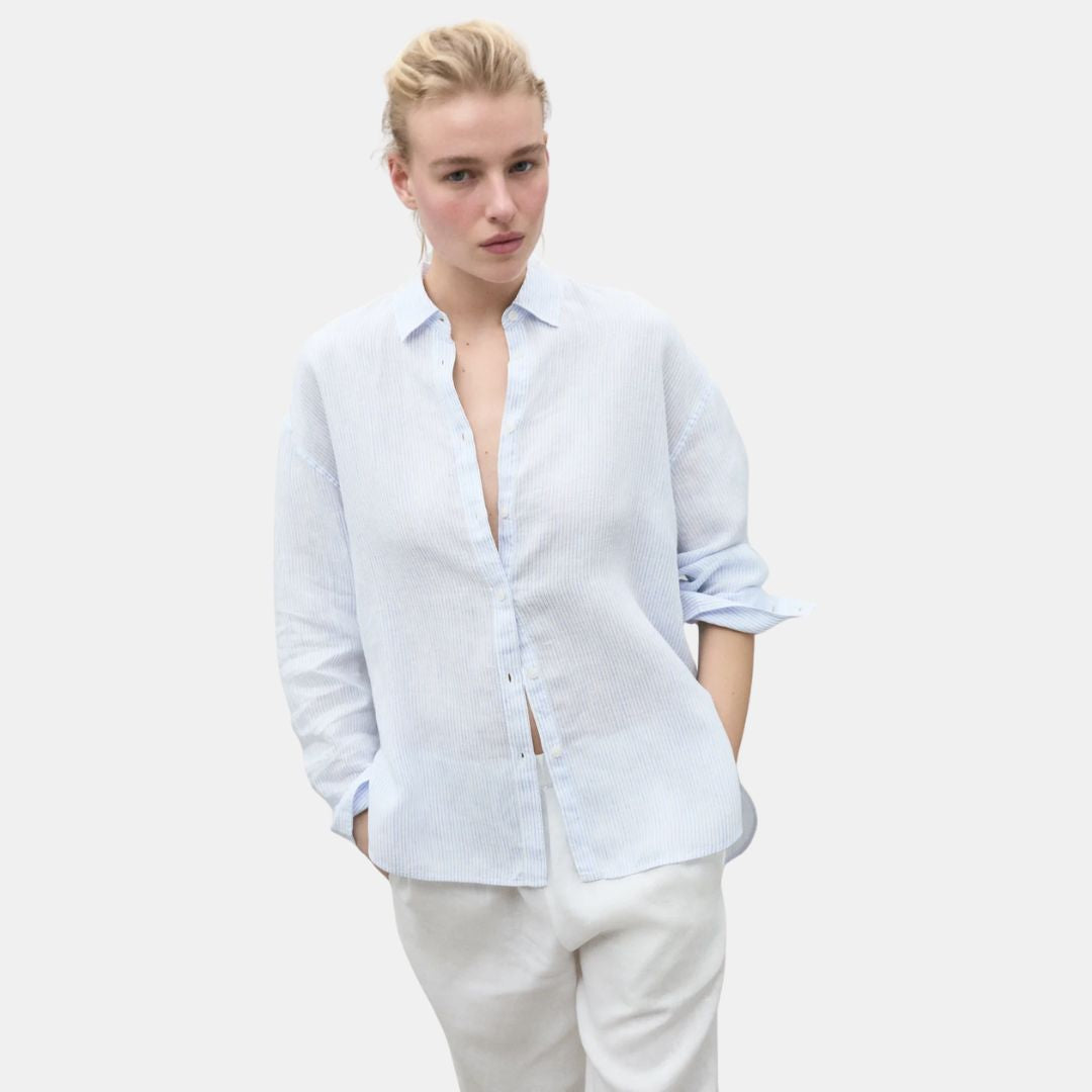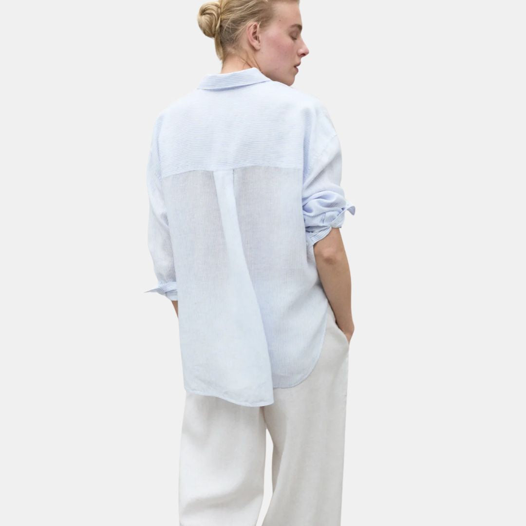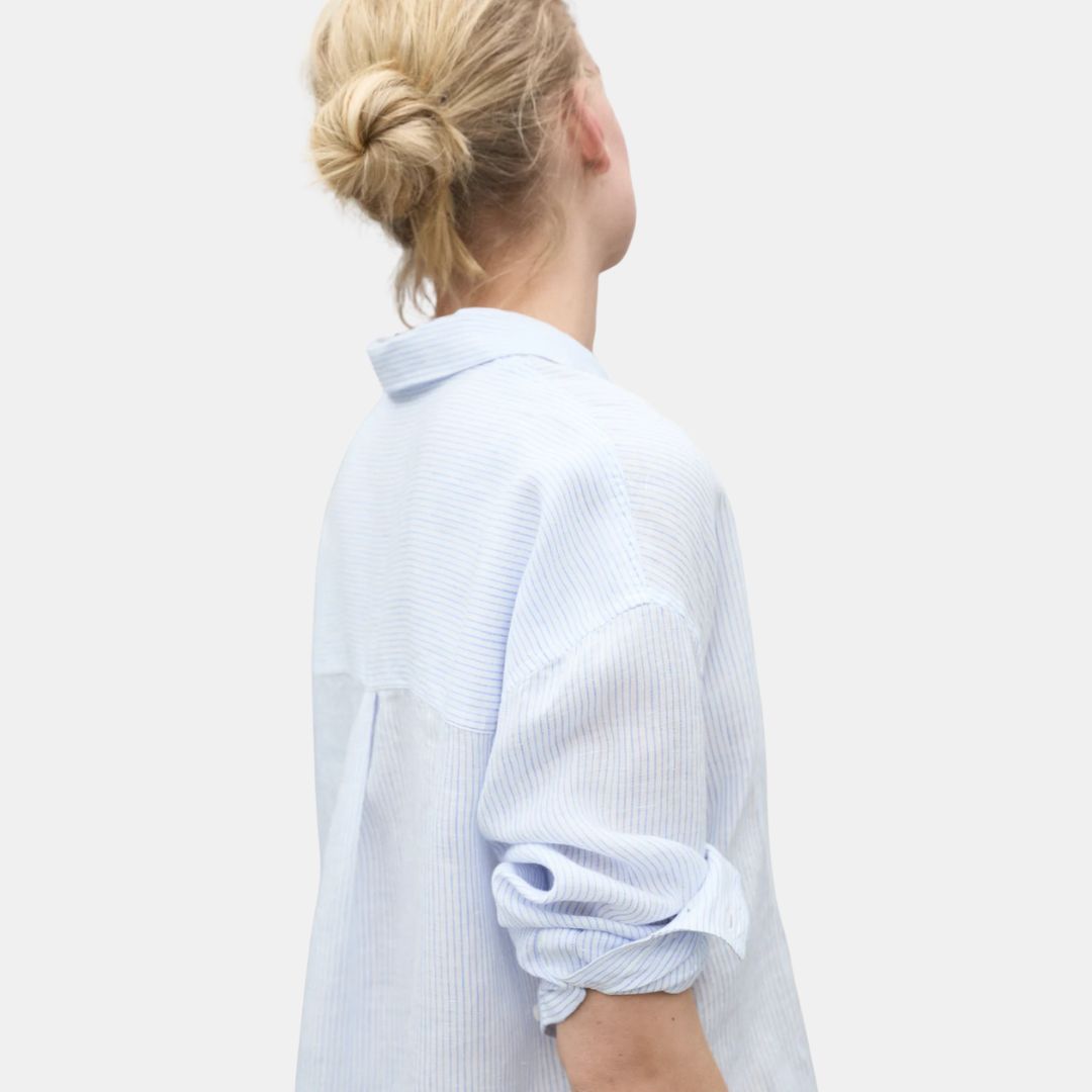 Ecoalf Daria Linen Shirt White Sky Blue Stripes