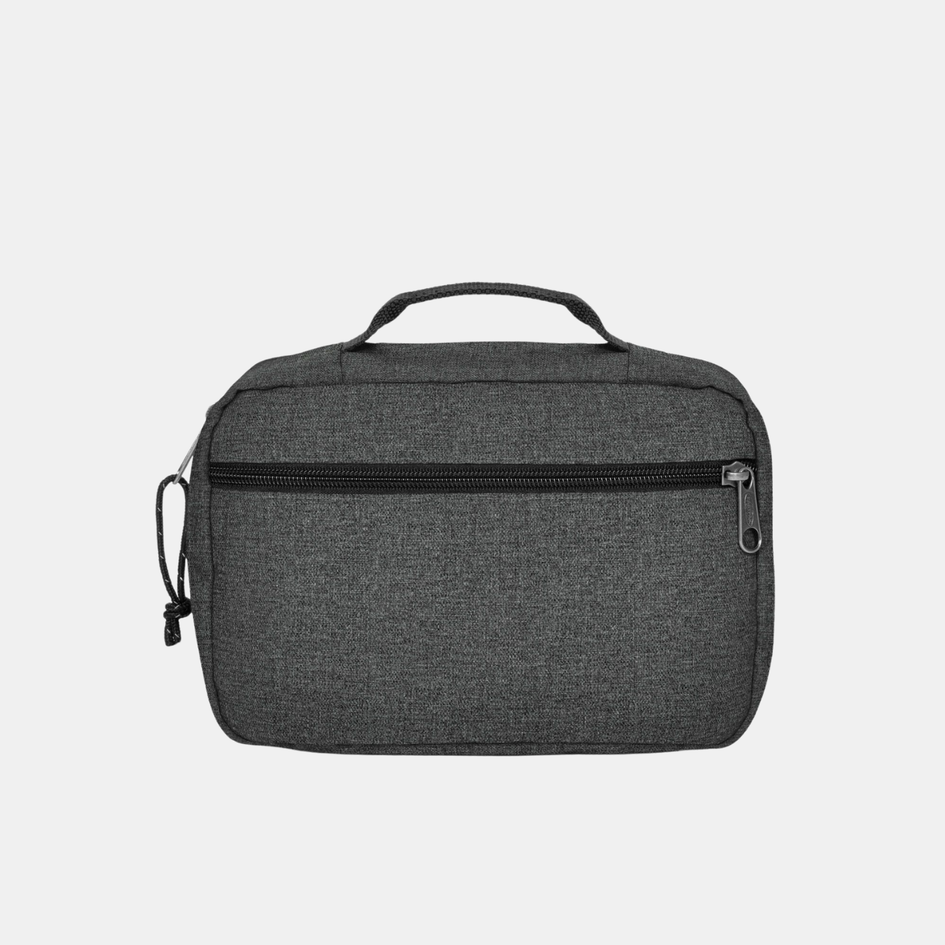 Die flache, multifunktionale Handtasche, ideal um Reiseutensilien organisiert zu halten, verfügt über mehrere Fächer und eine praktische Schlaufe, mit der sie bequem überall aufgehängt werden kann.