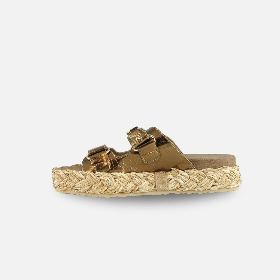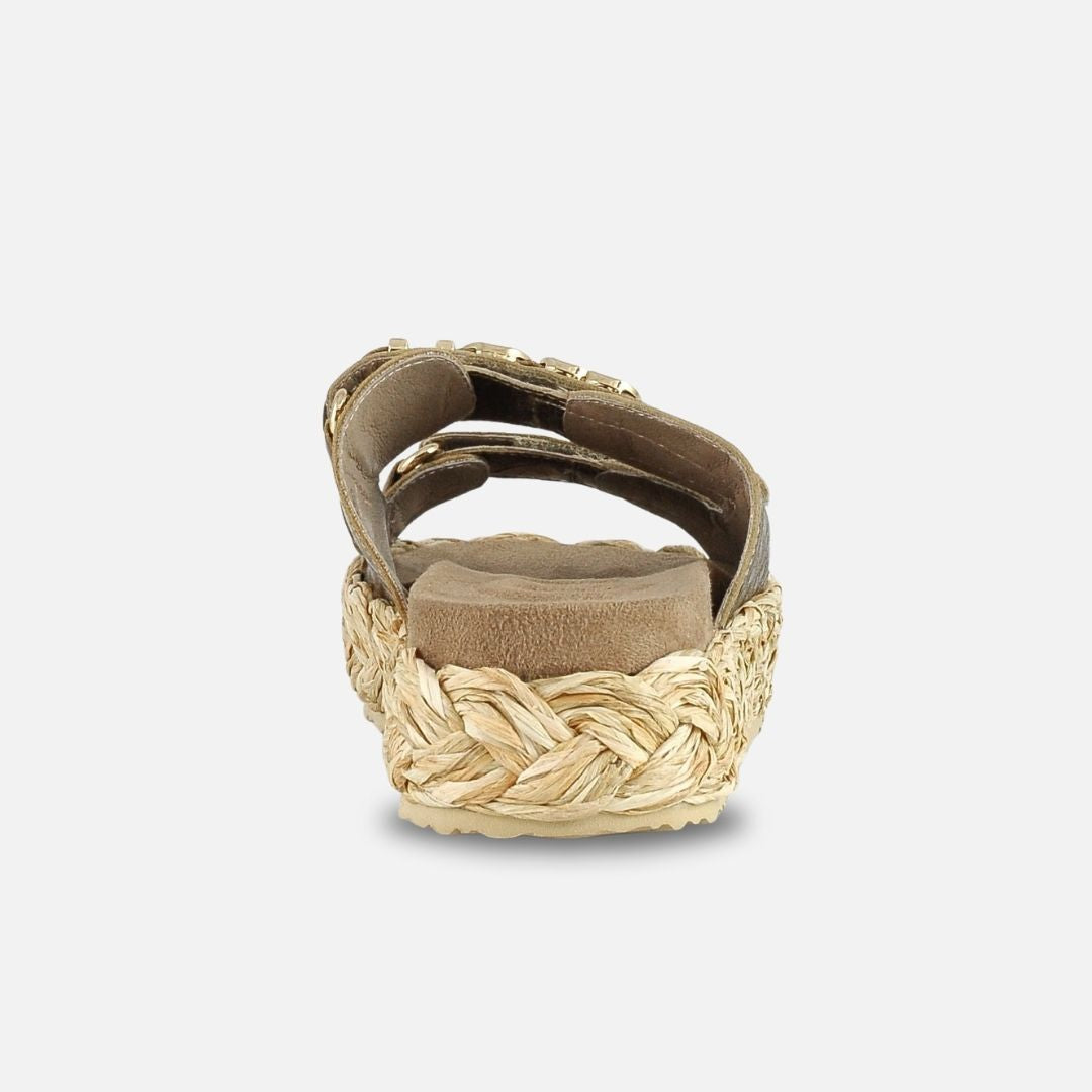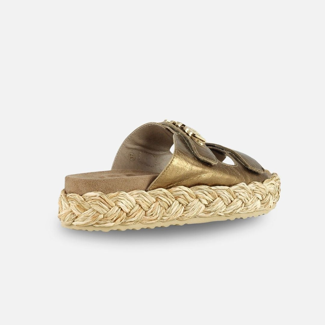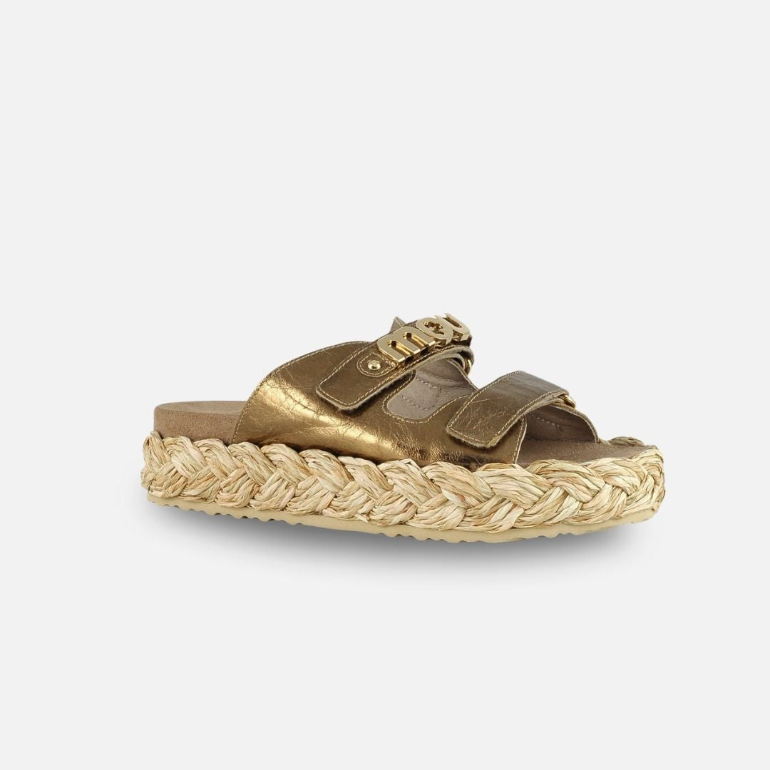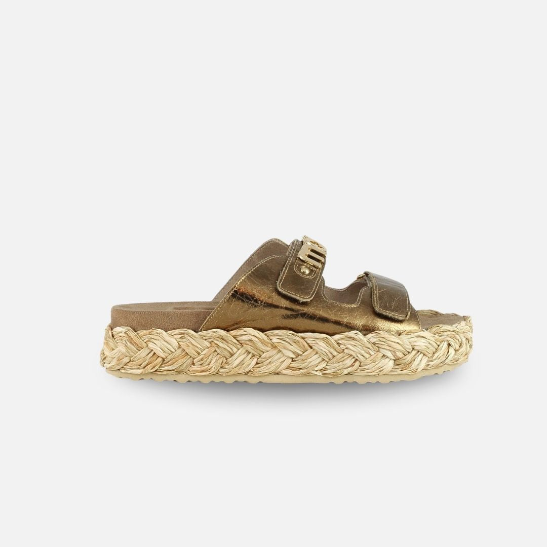 Mou Raffia Braid Sandal Leather Upper Untique Gold