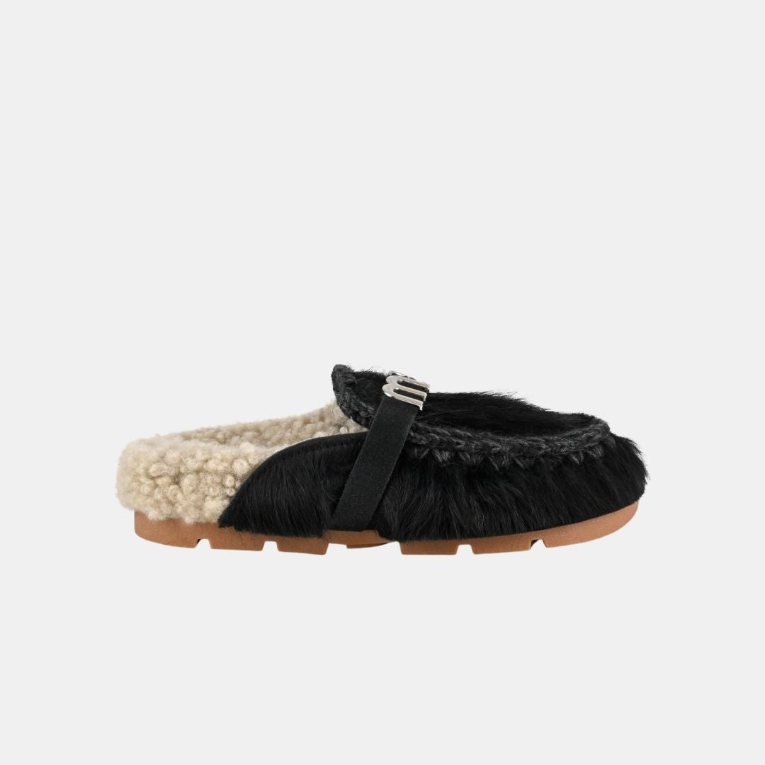 Mou Winter Bio Slide Long Hair Pony & Logo Long Hair Pony Black