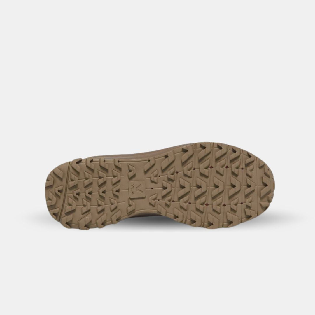 VEJA hat einen Schuh speziell für Trekking und Wanderungen entwickelt: Der Fitz Roy ist ein technischer Stiefel mit einer soliden und stabilen Sohle dank multidirektionaler Steigeisen und einer Felsplatte.