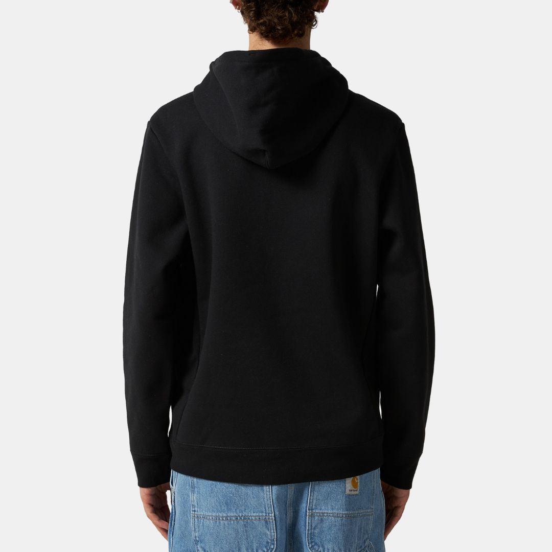 Ein klassisches Grafikdesign auf einem Kapuzenpullover aus recycelten Stoffen. Durch die Verwendung von Stoffresten und recycelten Flaschen reduziert dieses Kleidungsstück unsere Abhängigkeit von neuen Rohstoffen.