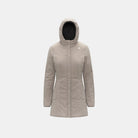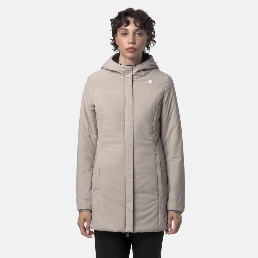 Die dreiviertellange Damenjacke Denise interpretiert den funktionalen Geist von K-Way mit einem femininen Touch neu. Das Design kombiniert eine Seite aus elastischem, wasserabweisendem Polyester mit einer Rückseite aus bedrucktem, winddichtem Polyester. Mit synthetischer Füllung für mittlere Wärmeisolierung, perfekt für die Übergangszeiten, verfügt das Design über verschweißte Nähte für thermische Isolierung und überlegenen Komfort bei Outdoor-Aktivitäten.