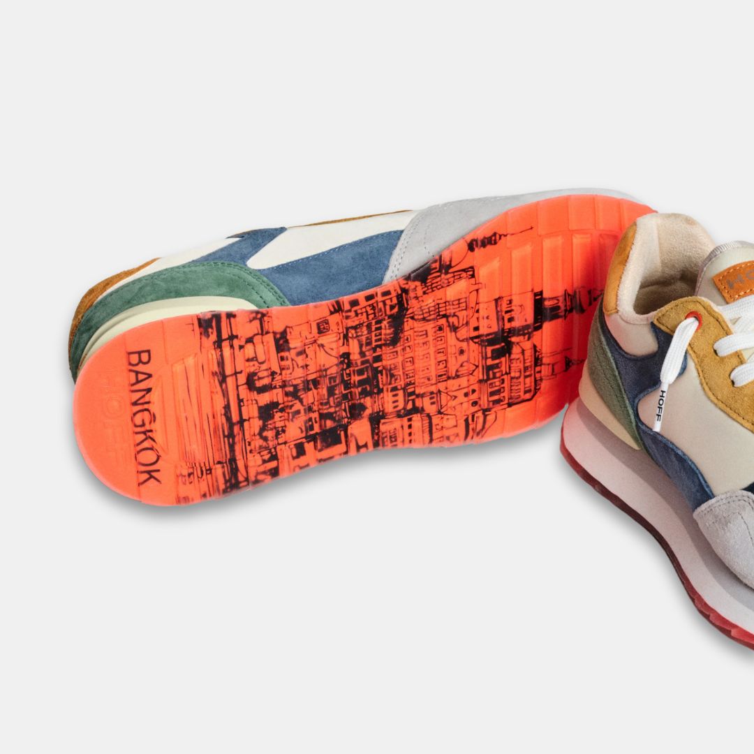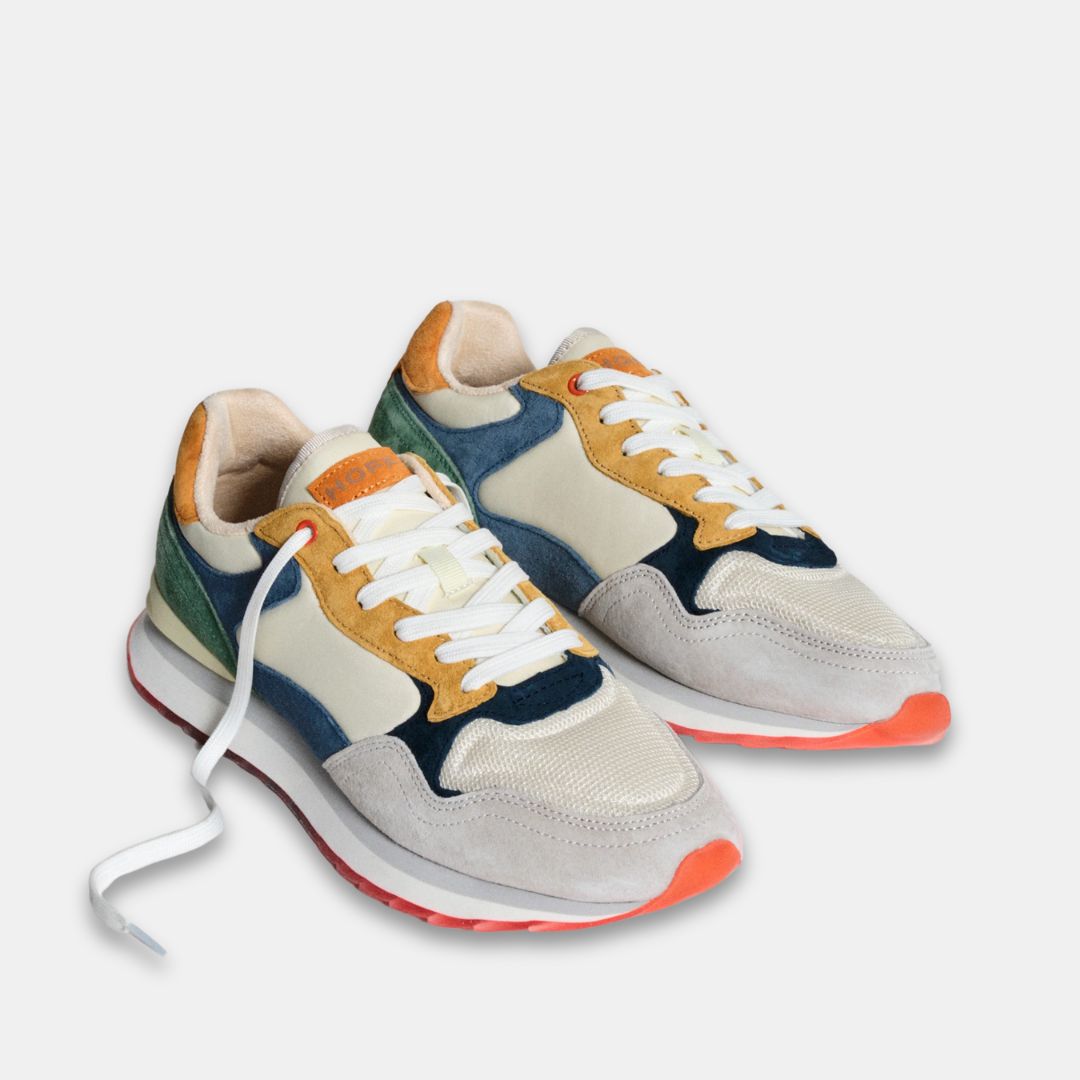 Retro-Style Sneaker in Materialkombination. Verschluss mit Schnürsenkeln. Logodetail an der Ferse.