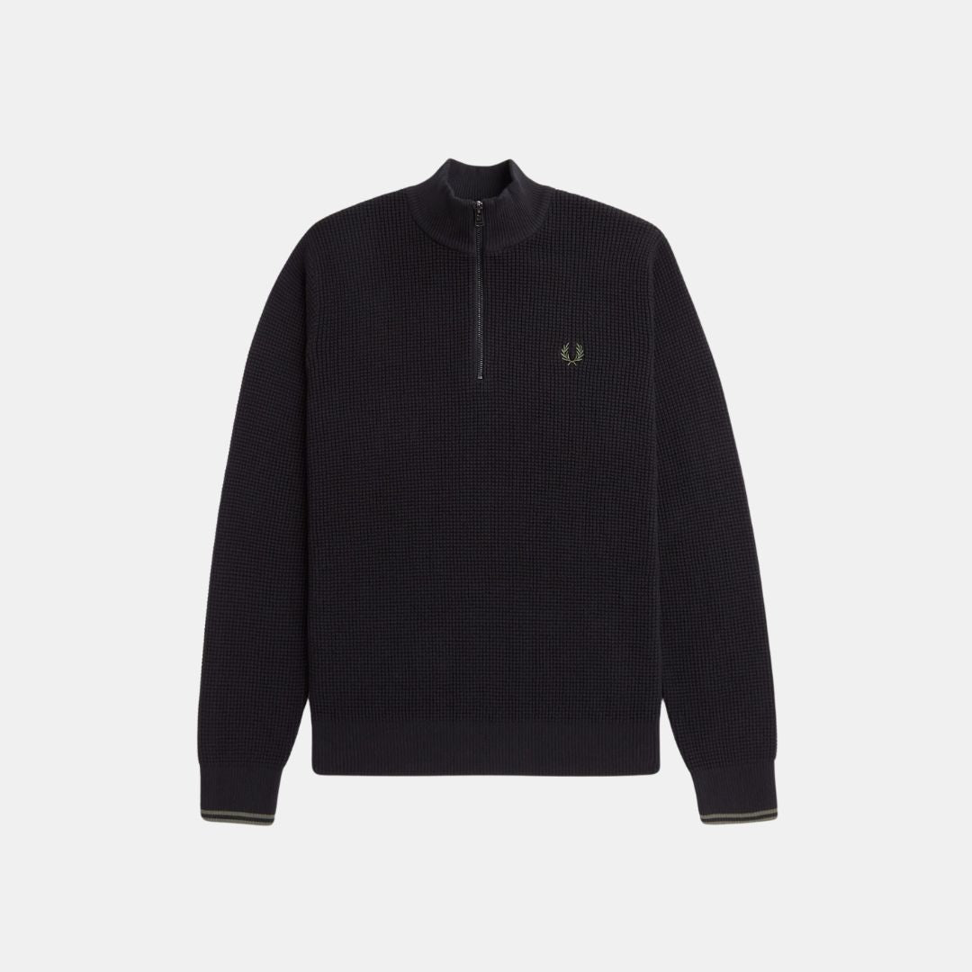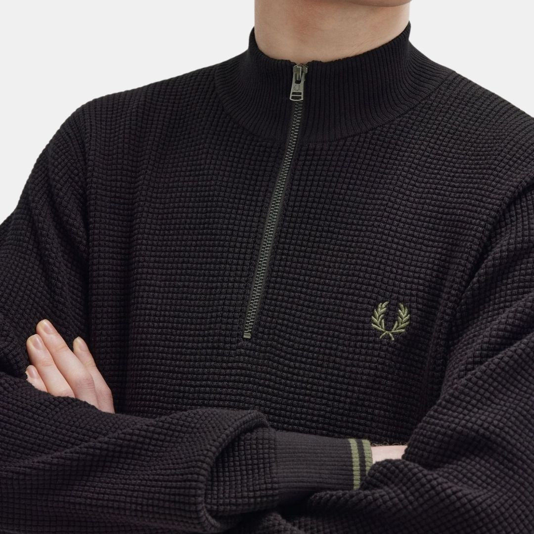 Fred Perry Jersey Waffle Stitch Half Zip Jumper Black