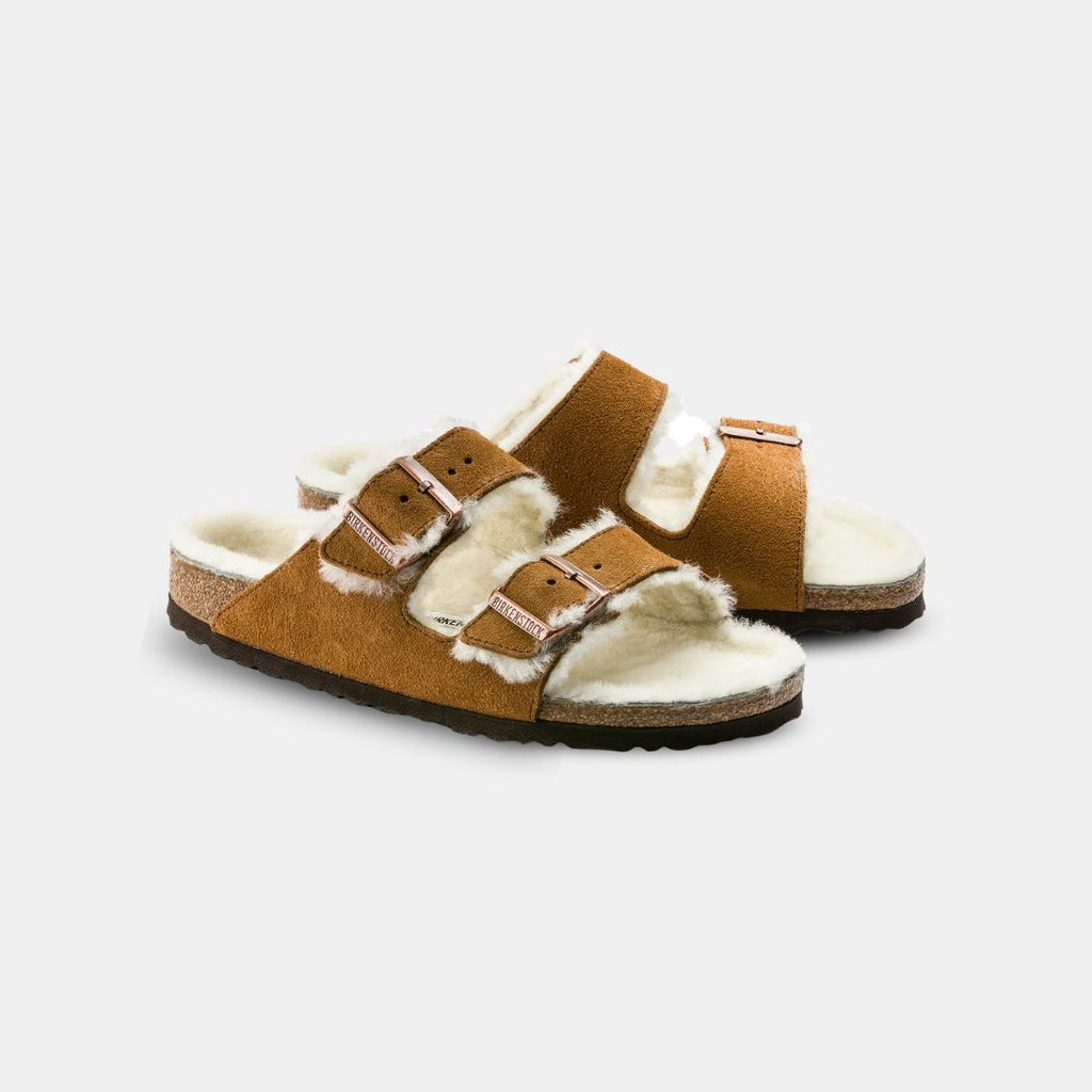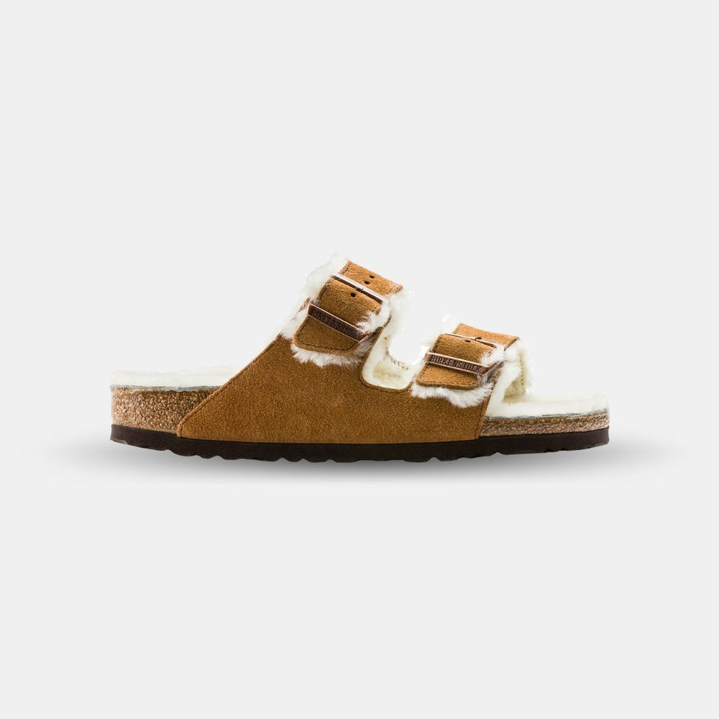 The bolder the better! This is a wonderfully comfortable version of BIRKENSTOCK's classic Arizona model with a shearling-lined insole and shearling-lined straps. The sandal can be individually adjusted to the wearer's foot using two vintage-style metal buckles. This ensures an excellent fit and firm grip. The level of comfort is enhanced by the flexible EVA outsole with the characteristic BIRKENSTOCK bone profile, which allows for a healthy rolling movement.