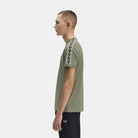 Cotton knit fabric / Straight cut / Ribbed cuffs and collar / Sports tape with brand logo on shoulders and sleeves / Laurel crown logo embroidered on the left chest