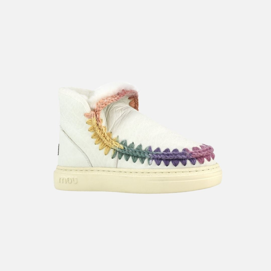 Mou Eskimo Sneaker Bold Rainbow Stitching Nubuck True White