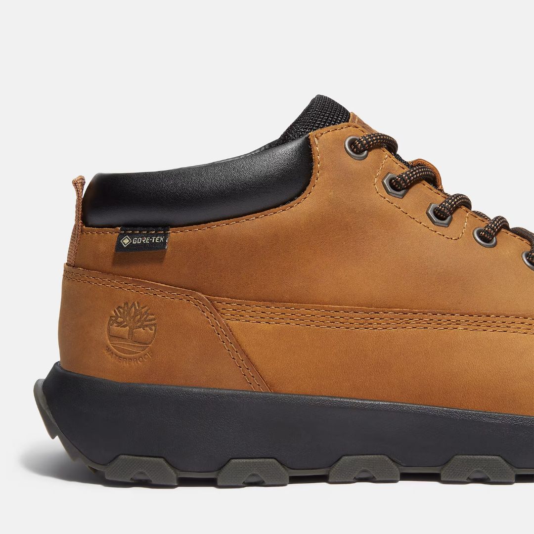 These versatile sneakers feature a fully waterproof design, specially created to keep your feet comfortable and dry all day long. In addition to this waterproofing, they include a Premium Timberland® Leather upper, a GreenStride™ midsole made from an EVA polymer composed of at least 65% bio-based materials derived from responsibly grown sugarcane and rubber, and a ReBOTL™ fabric made with 50% recycled PET plastic. Timberland promotes responsible leather manufacturing through the Leather Working Group.