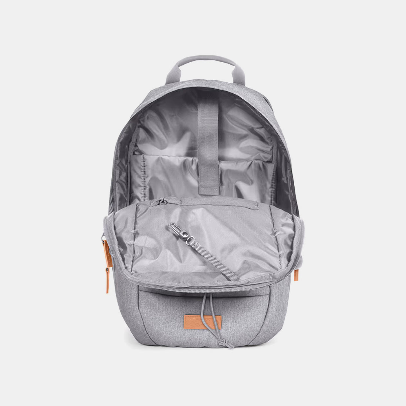 A spacious backpack with a large main compartment, a laptop sleeve and a bottle holder. It's designed for outdoor adventures and has compression straps and an external bungee cord to attach additional accessories on the go.