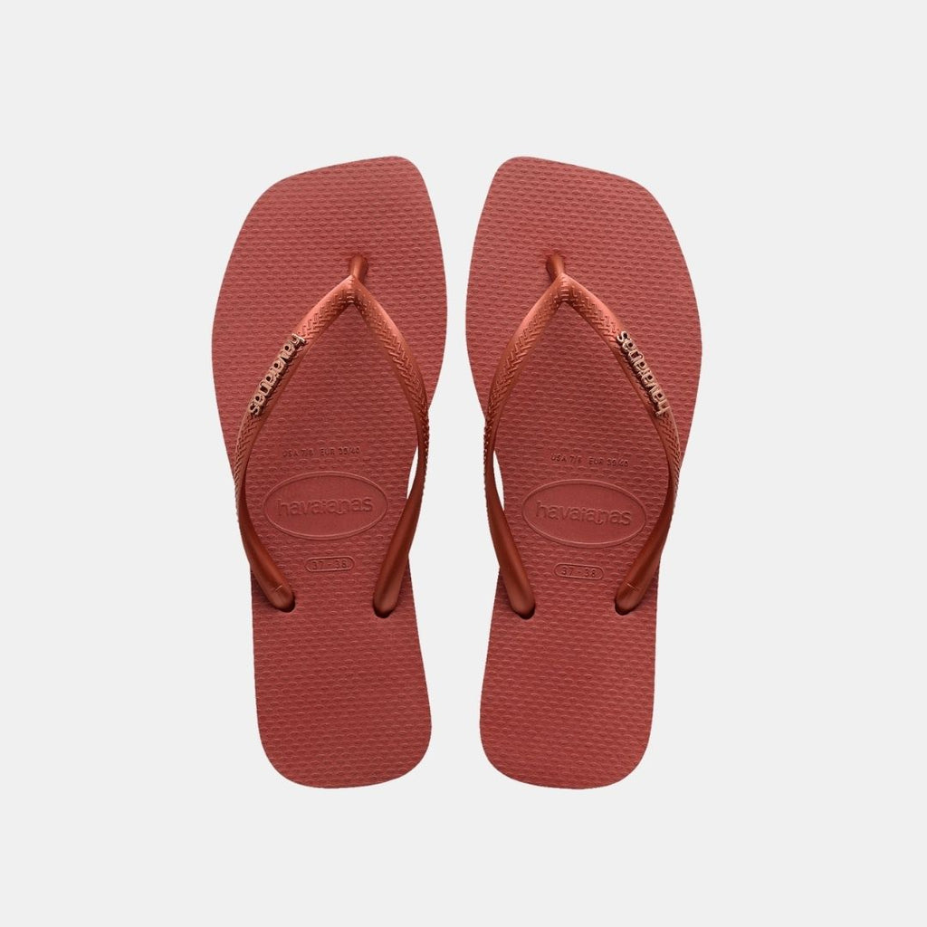 The Havaianas Square Logo Metallic flip-flops are a stylish and eye-catching choice for summer. With a non-slip sole and a timeless design, these flip-flops are available in a wide variety of colors with a metallic finish and the Havaianas logo on the strap. The soft rubber strap and padding on the inside ensure a comfortable fit at all times. Complete your summer look with the Havaianas Square Logo Metallic flip-flops!