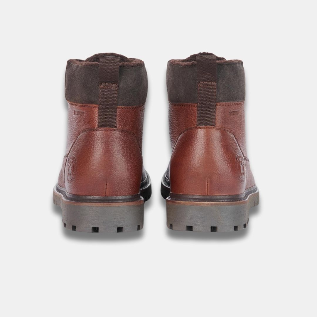 The Barbour Storr boots feature a Derby-inspired design with a hydrophobic leather construction. With a fully packed membrane, these boots offer a comfortable design for long walks outdoors. outdoors.