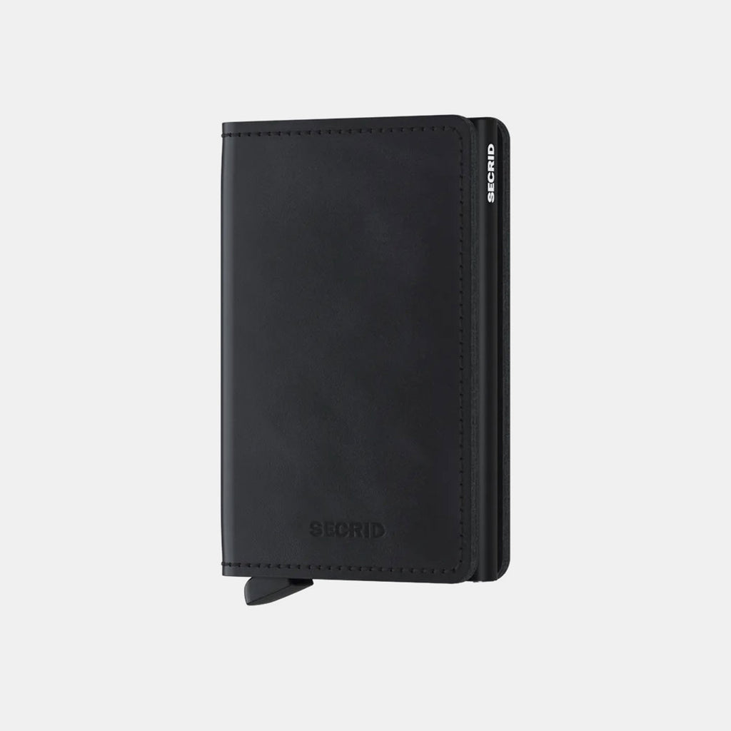 Thanks to its slim profile, the Slimwallet fits perfectly in all pockets. The outer cover is cut to a longer length to create more space for cards, bills and tickets. The heart of the product is the Cardprotector, whose mechanism allows the cards to be removed with a simple movement, preventing them from being bent, broken or read without us realizing it.