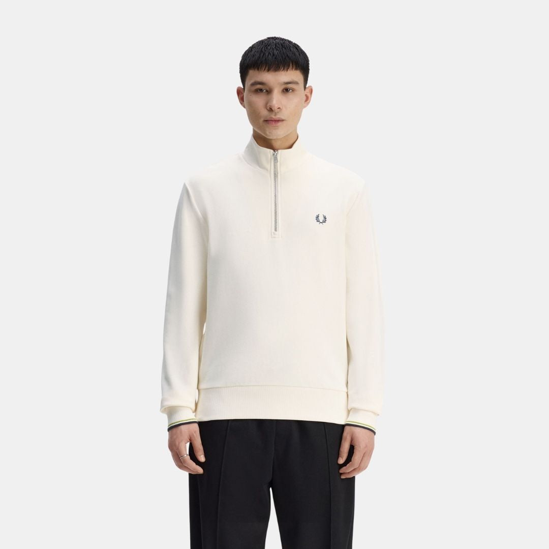 Fred Perry Half Zip Sweatshirt Ecru-Grey