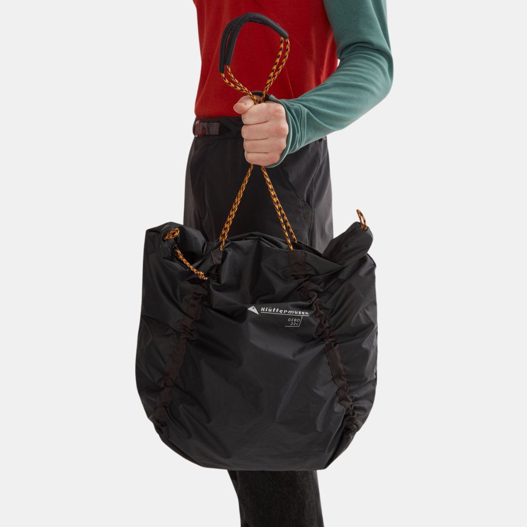 The Gebo handbag is lightweight and technical, with a 23-liter capacity, ideal for daily use. It features two 5 mm padded cord handles, allowing it to be compressed and the cords extended to carry it on the shoulder. Its rip-stop material makes it very light and durable. Gebo has a small inner security pocket, where items can also be stored.