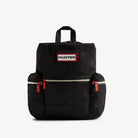 The Hunter Original Mini Nylon Top Clip is waterproof and perfect for your daily commutes and weekend getaways. Made from water-resistant nylon with leather trim, it features a spacious interior with a 13 L capacity. For added security, it includes a parachute clip and a top zipper closure. The main compartment offers space for a 12.5" laptop, while the side pockets provide easy access to your everyday items. This black mini backpack is inspired by our iconic Original Tall rain boot, with elements like the Hunter tricolor zippers and padded adjustable straps that incorporate our signature padding. In a classic tone, it is undeniably distinctive and true to Hunter's DNA.