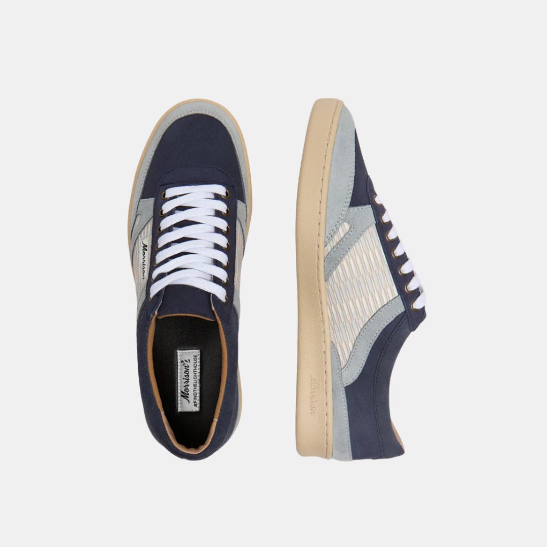 For lovers of comfort without giving up style. Made of dark blue and light blue suede with a side geometric print, they will be your basic for the new geometric season, more Morrison than ever.