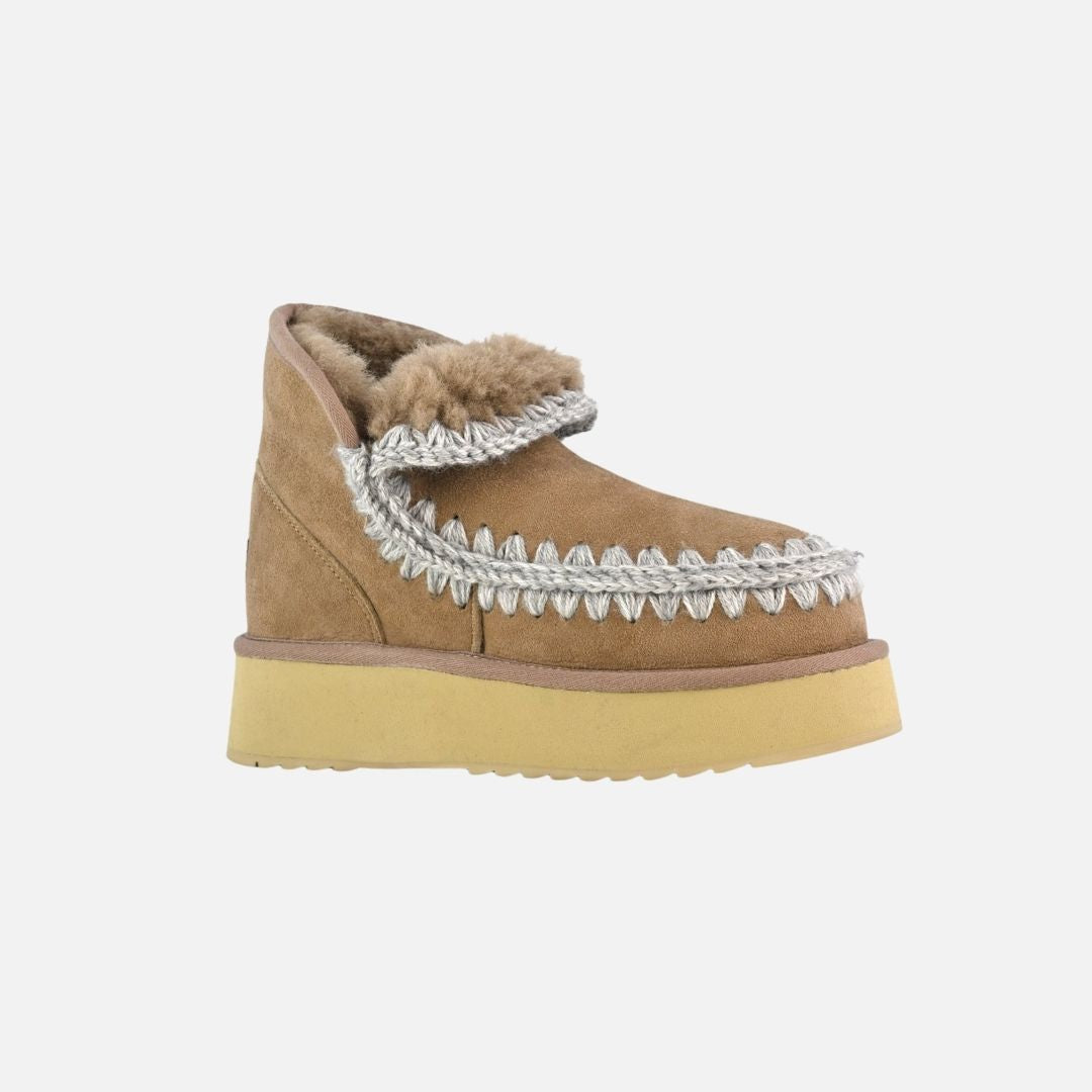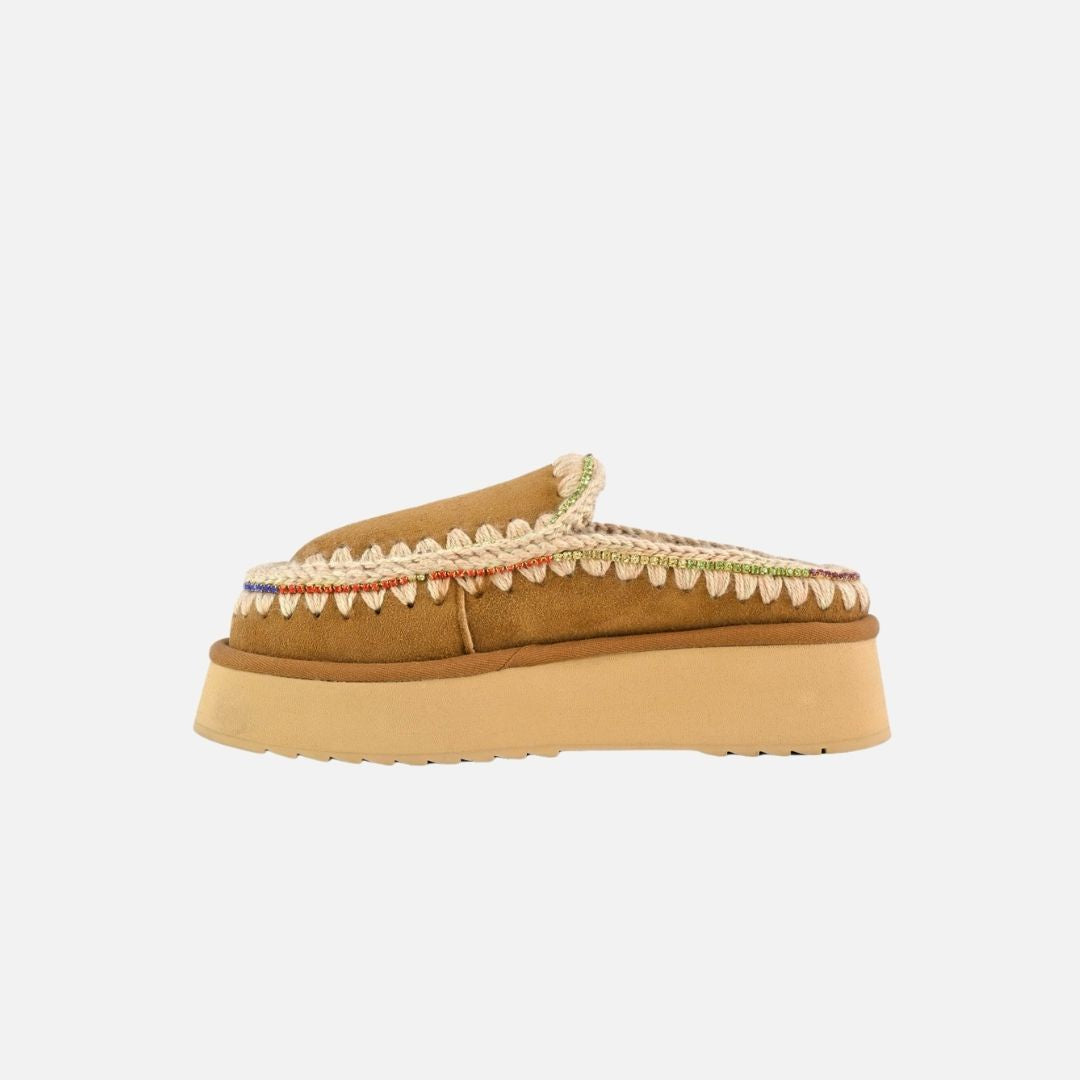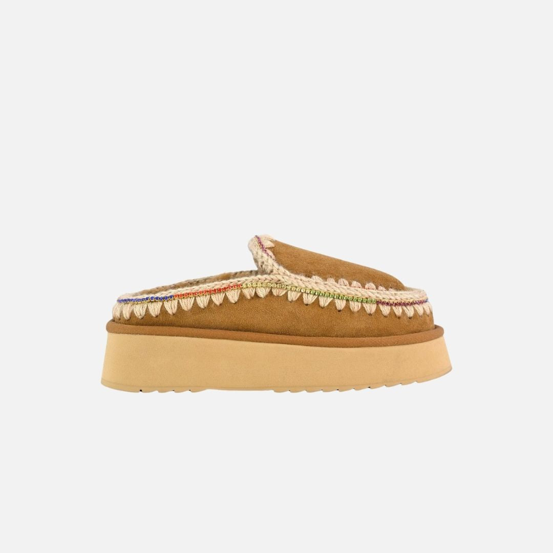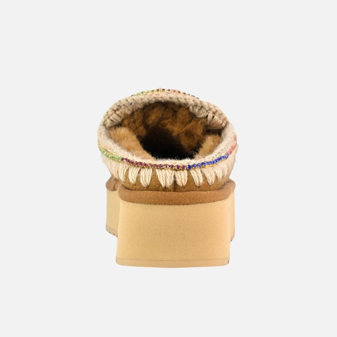 New for the Autumn-Winter 24 season, the eskimo 18 platform with rhinestones adds a touch of color. Handcrafted by expert artisans in luxurious suede with the brand's signature wool stitching. Incredibly comfortable and resistant with EVA sole. Height 18 cm.