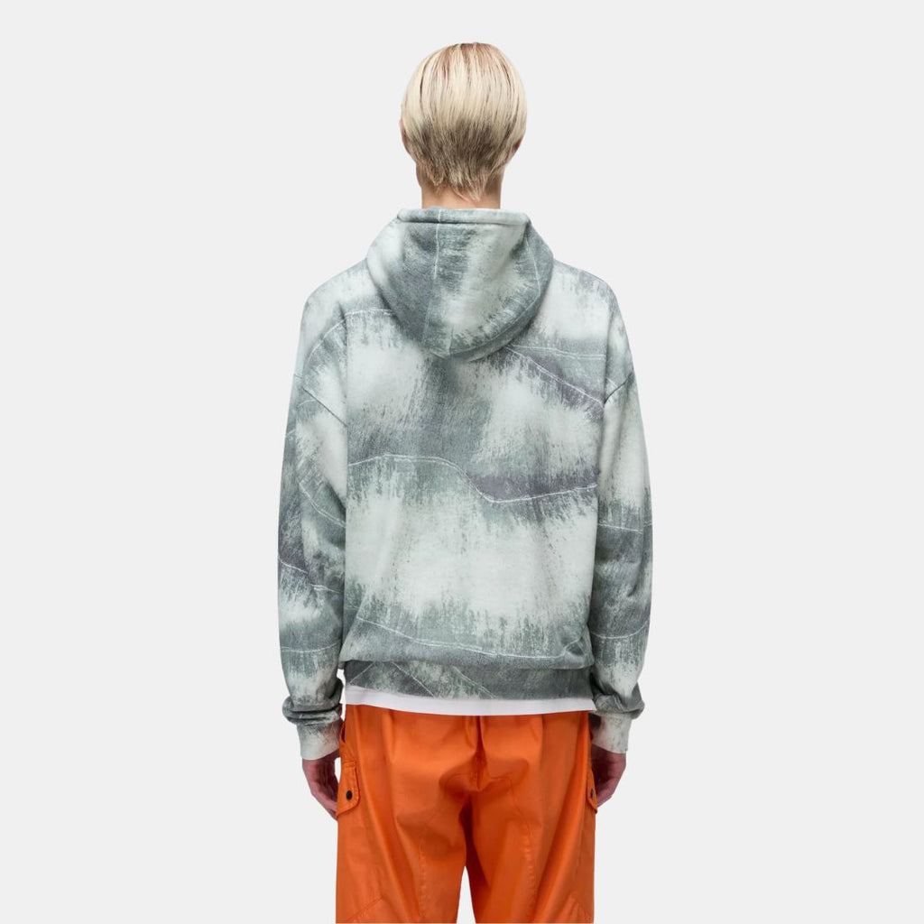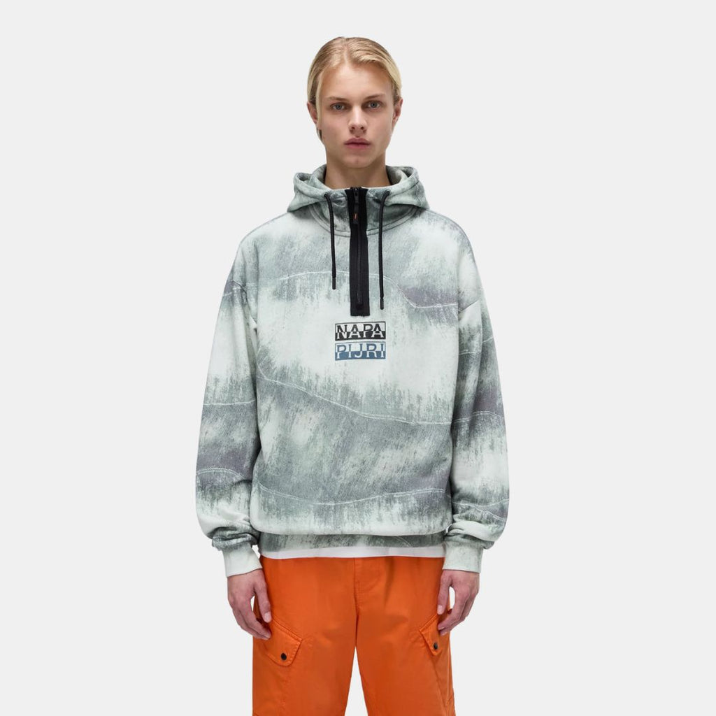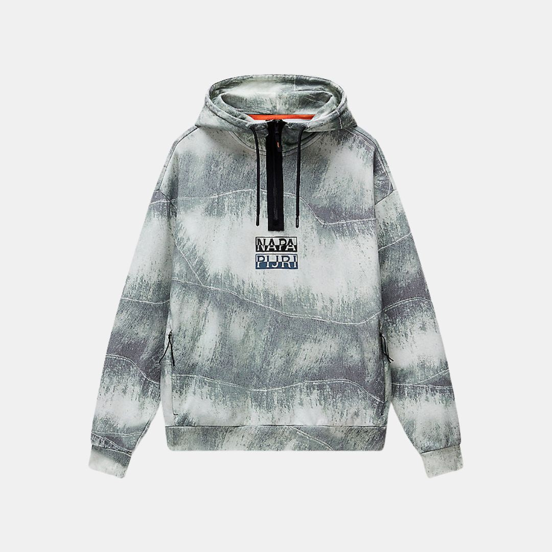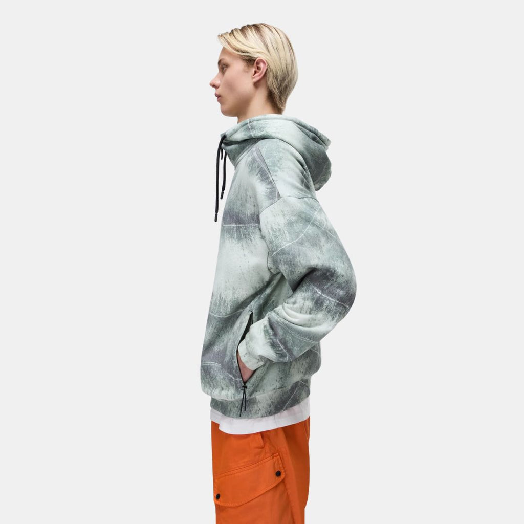 The Tora sweatshirt, with a full zipper, adjustable hood, and embroidered eyelets, is a daily layer made from warm fleece fabric with a unique faded finish.