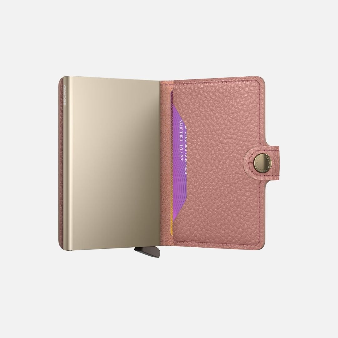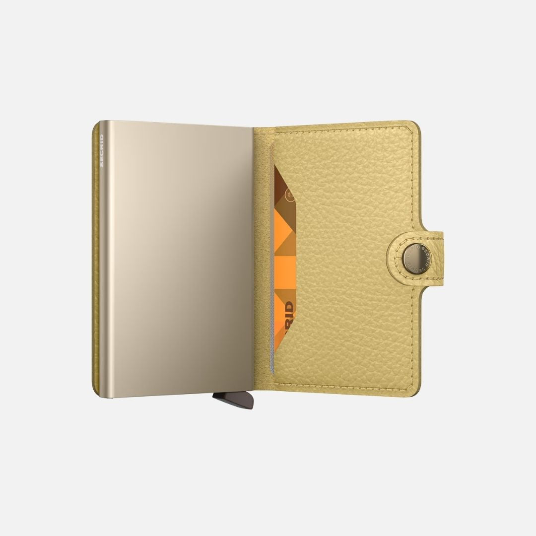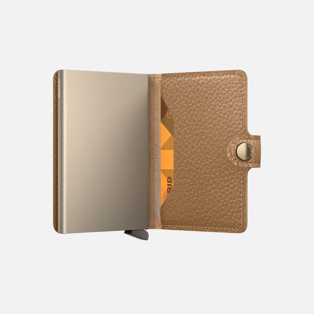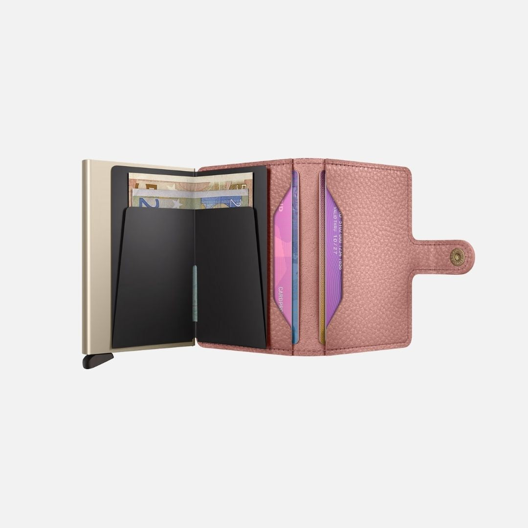 Small in size but with a surprisingly large capacity: the Miniwallet meets all needs. The outer cover can contain bills, tickets and cards, while the aluminum Cardprotector allows the cards to be removed with a simple movement, preventing them from being bent, broken or read without us realizing it.