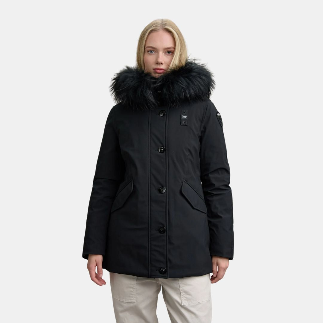 Blauer Althea Long Down Jacket With Geometric Lines Black Inside Beige