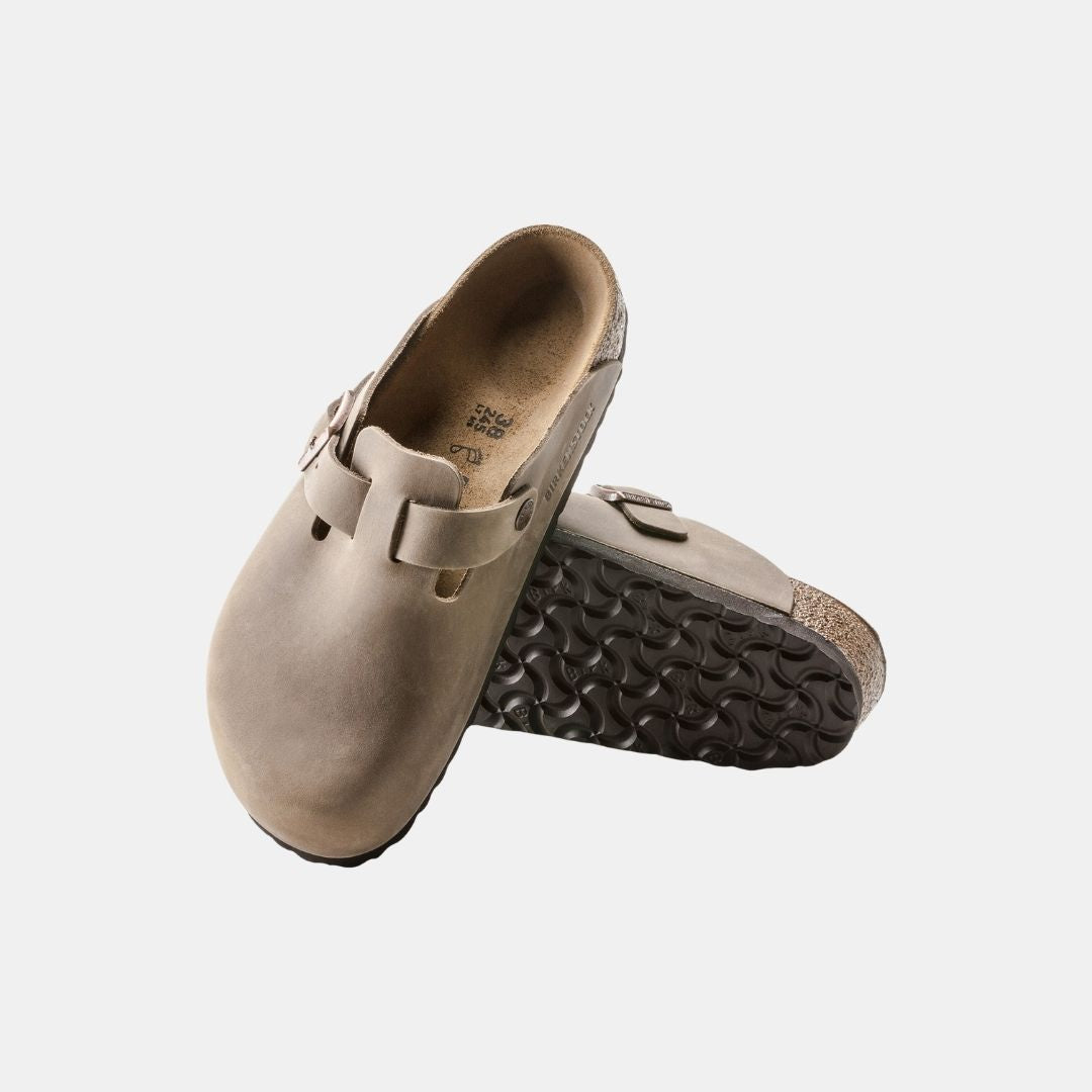 The BIRKENSTOCK Boston model is a true classic that can be worn without problem all year round. With its refined design that can be individually adapted, the Boston has long enjoyed legendary status. The upper material is very thick and oiled nubuck leather, made without seams on the edges.